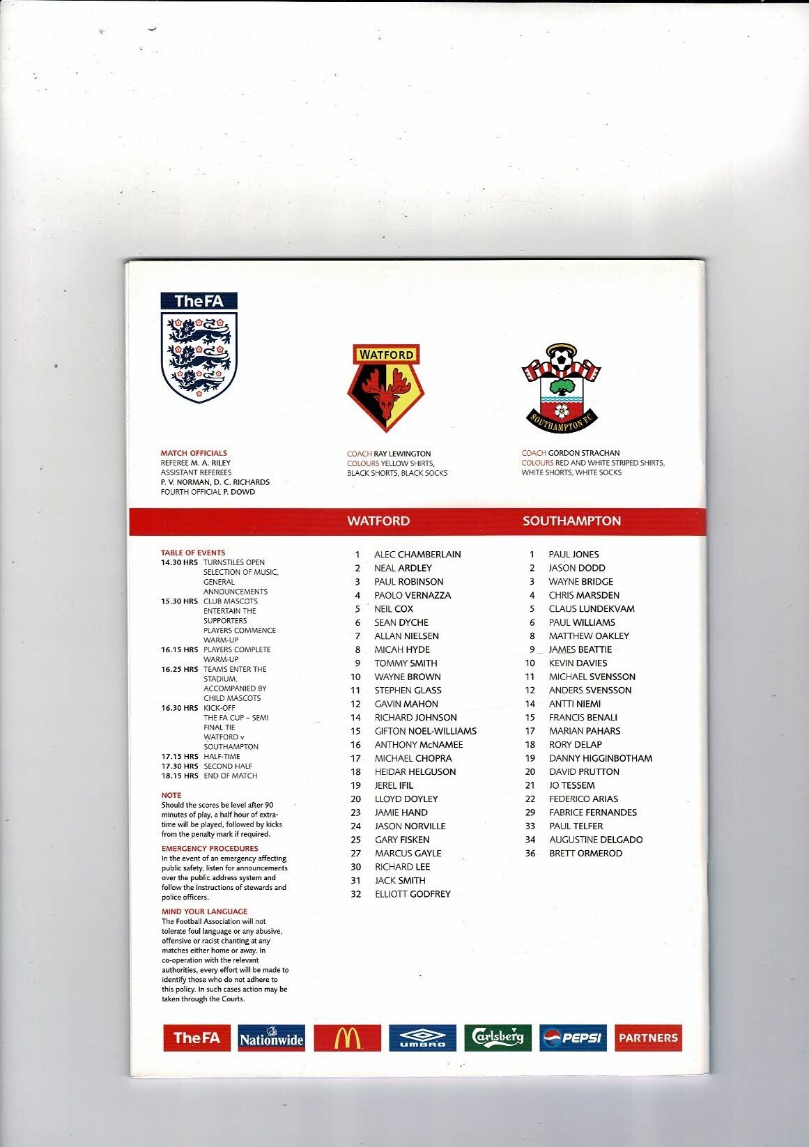 2003 Watford v Southampton FA Cup Semi Final Football Programme