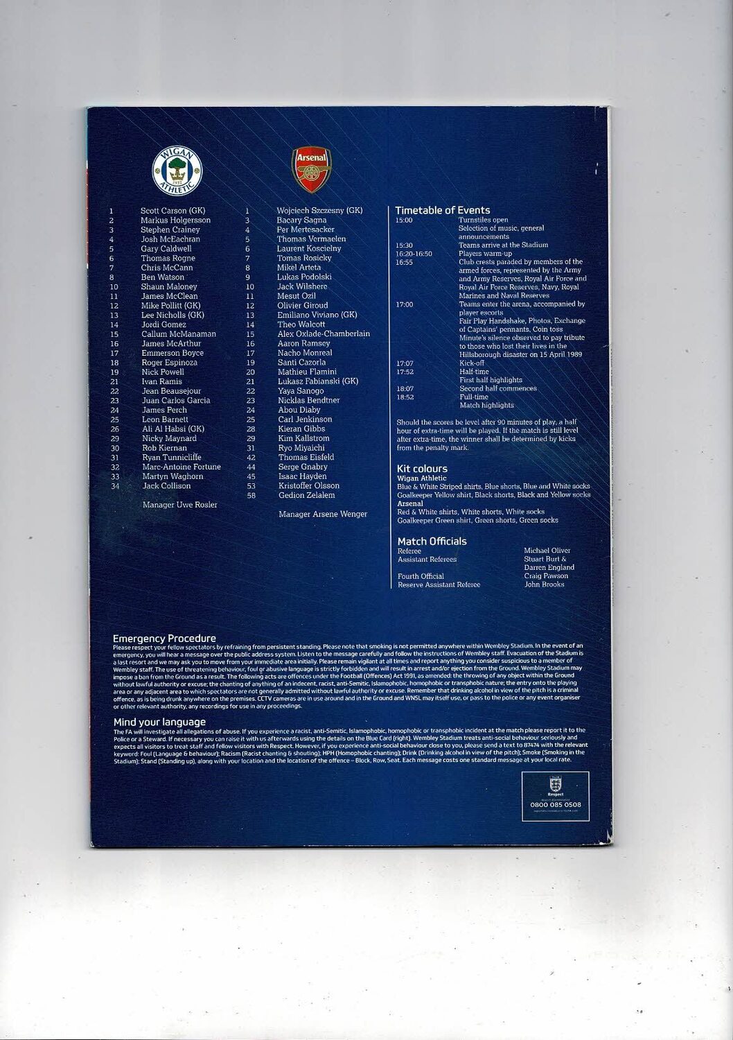 2014 Wigan Athletic v Arsenal FA Cup Semi Final Football Programme