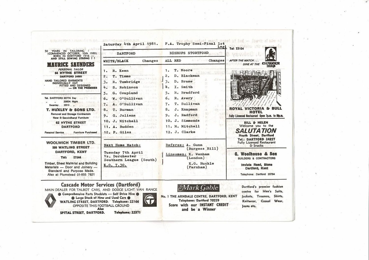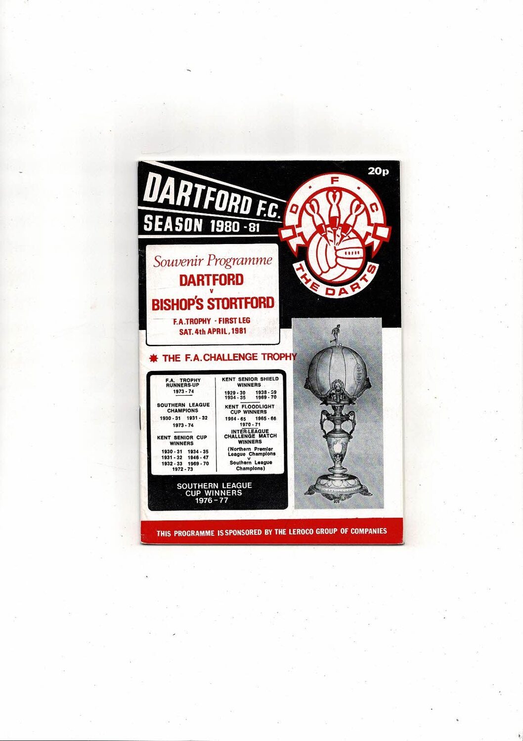 1980/81 Dartford v Bishop's Stortford Trophy Semi Final Football Programme