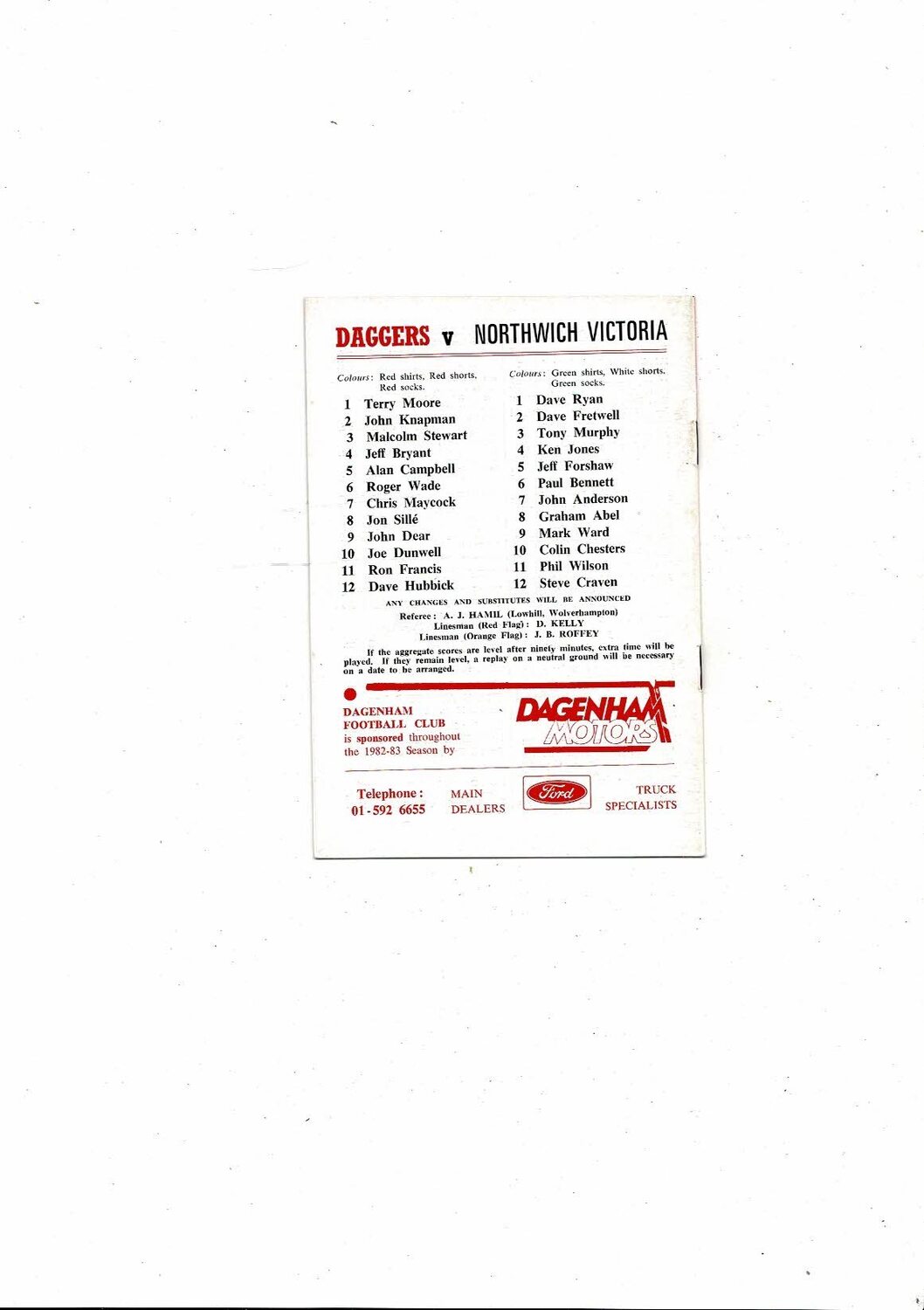 1982/83 Dagenham v Northwich Victoria Trophy Semi Final Football Programme
