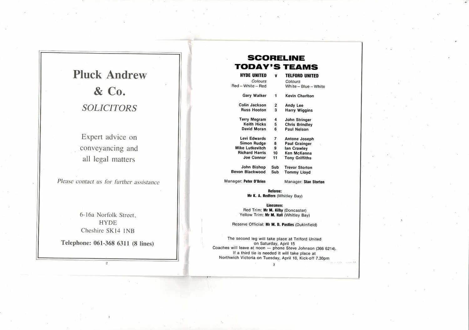 1988/89 Hyde United v Telford United Trophy Semi Final Football Programme