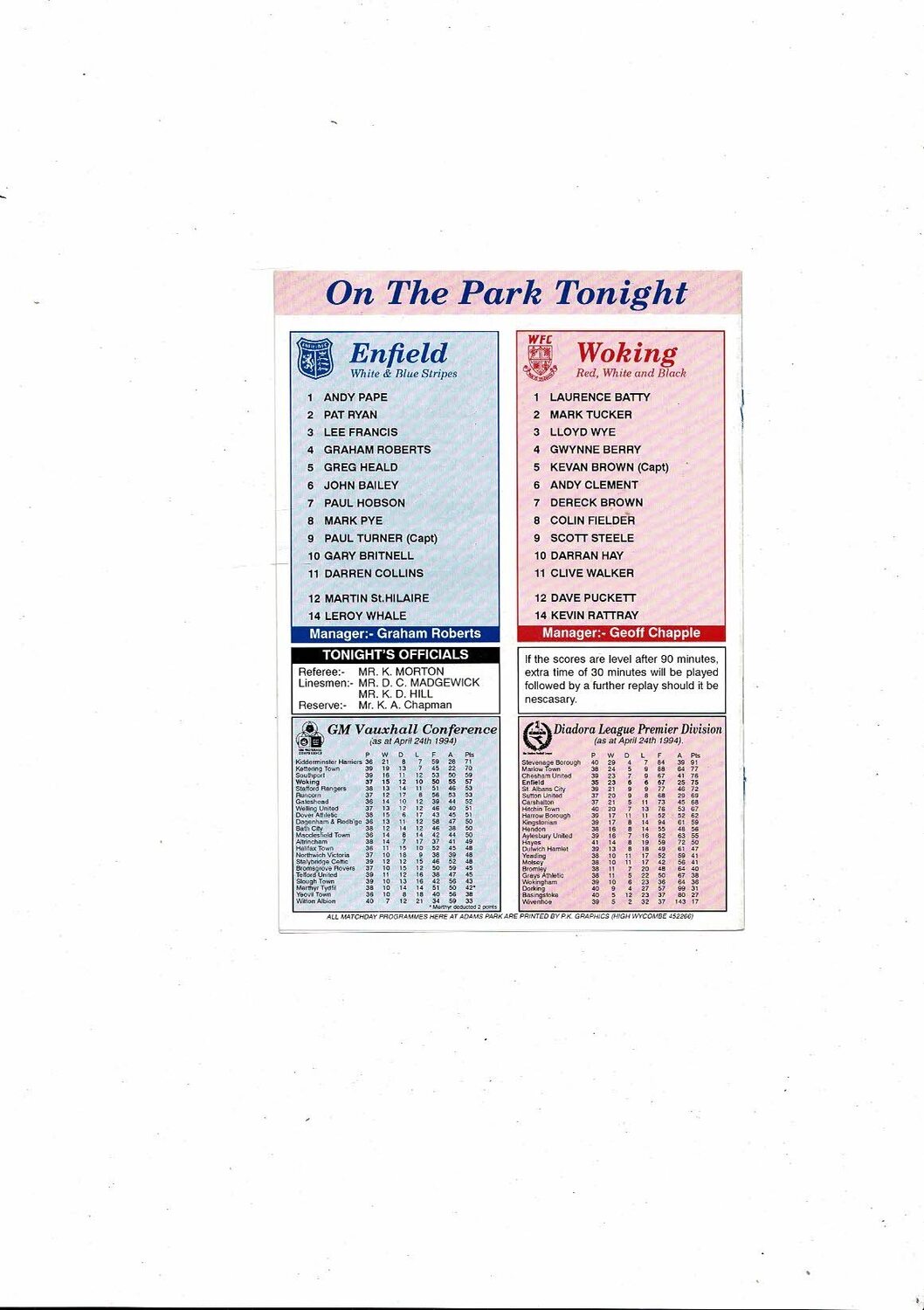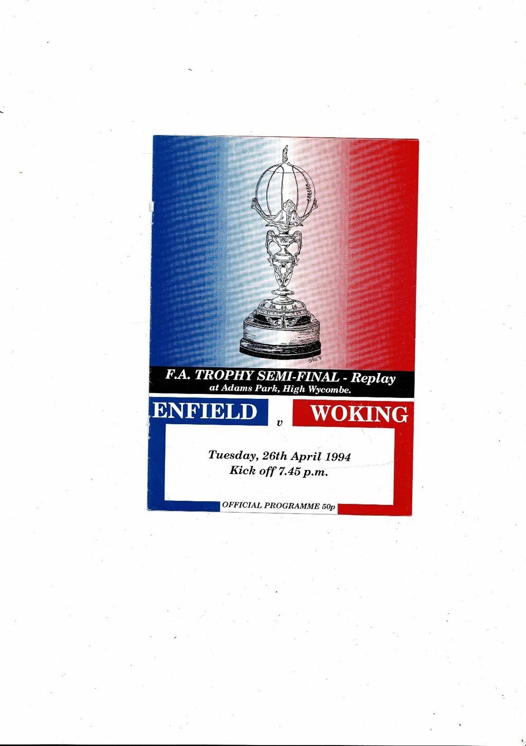 1993/94 Enfield v Woking Trophy Semi Final Replay Football Programme