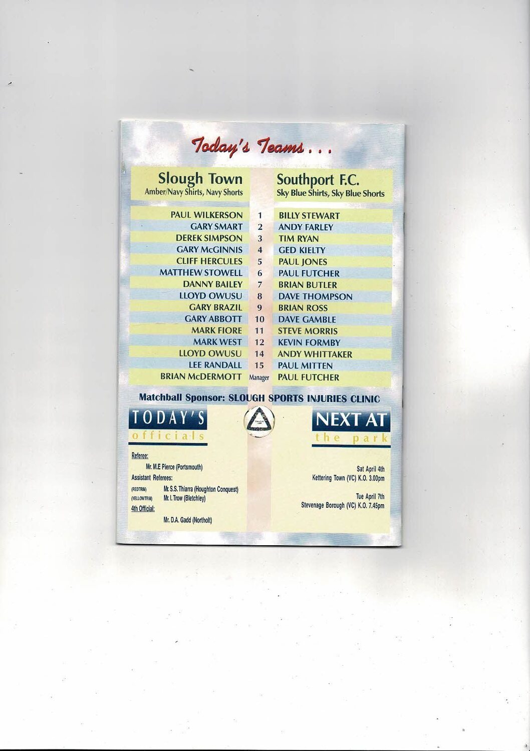 1997/98 Slough Town v Southport Trophy Semi Final Football Programme