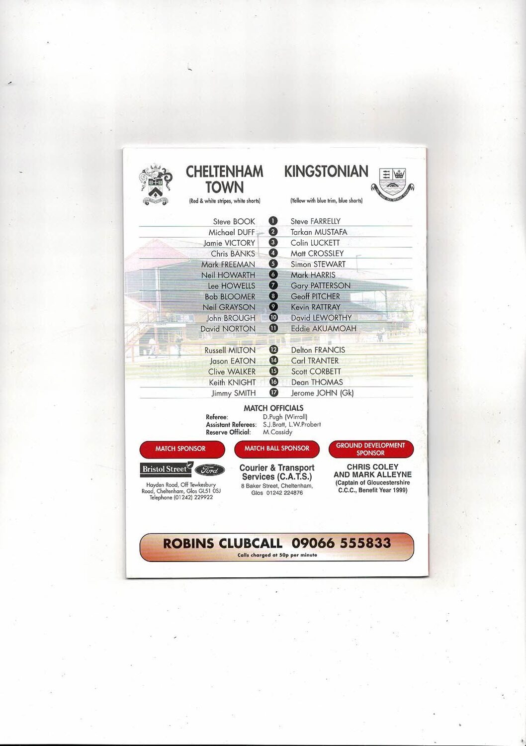 1998/99 Cheltenham Town v Kingstonian Trophy Semi Final Football Programme