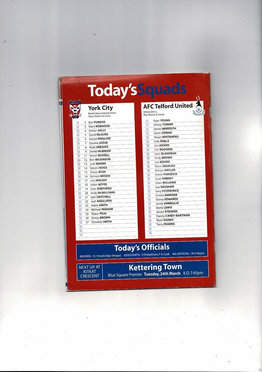 2008/09 York v Telford United Trophy Semi Final Football Programme