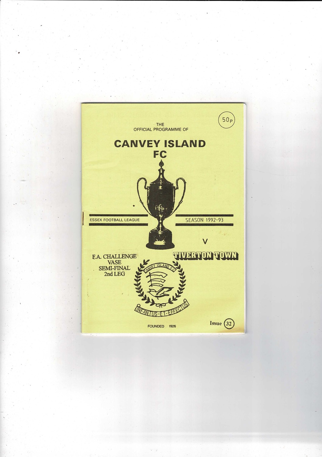 1992/93 Canvey Island v Tiverton Town Vase Semi Final Football Programme