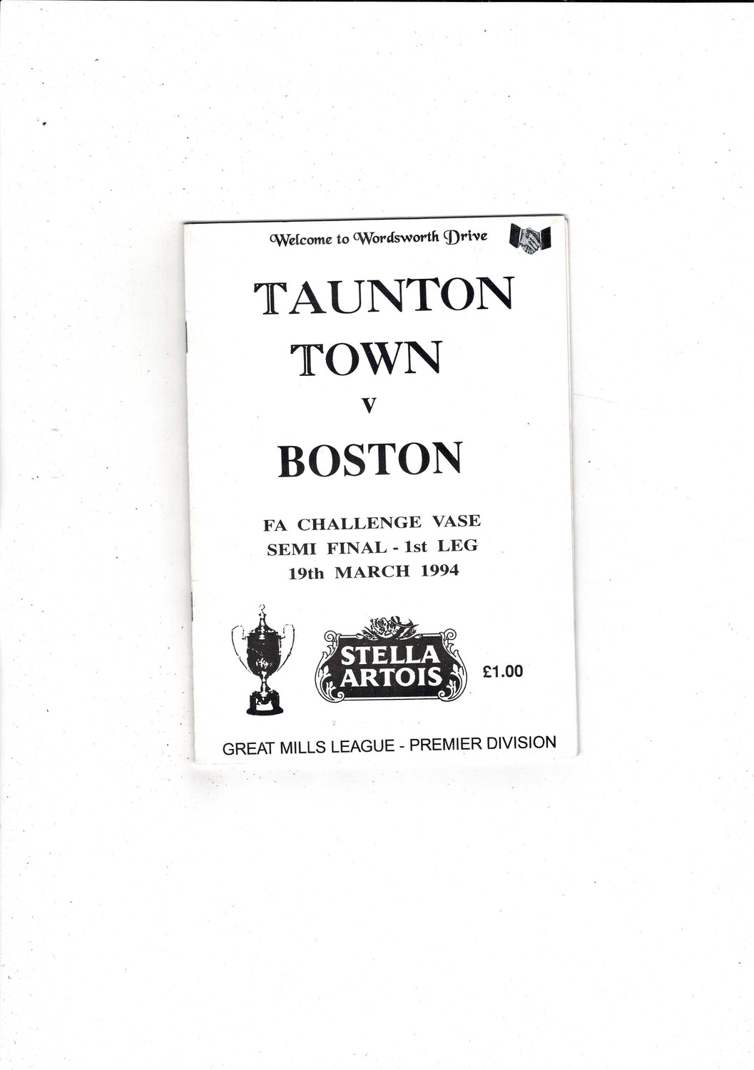 1993/94 Taunton Town v Boston Vase Semi Final Football Programme