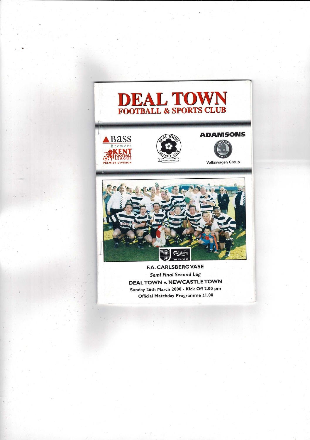 1999/00 Deal Town v Newcastle Town Vase Semi Final Football Programme