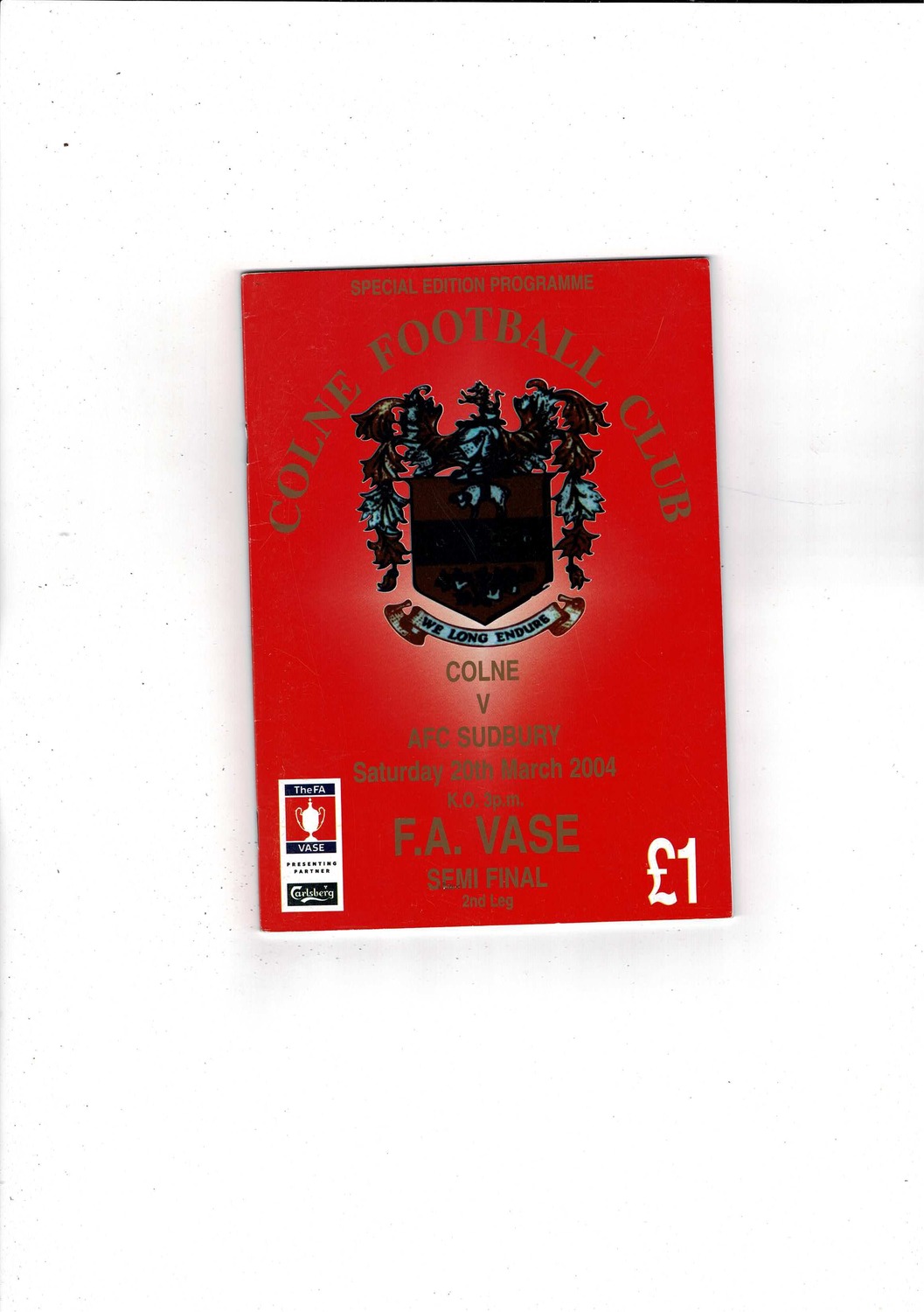 2003/04 Colne v AFC Sudbury Vase Semi Final Football Programme