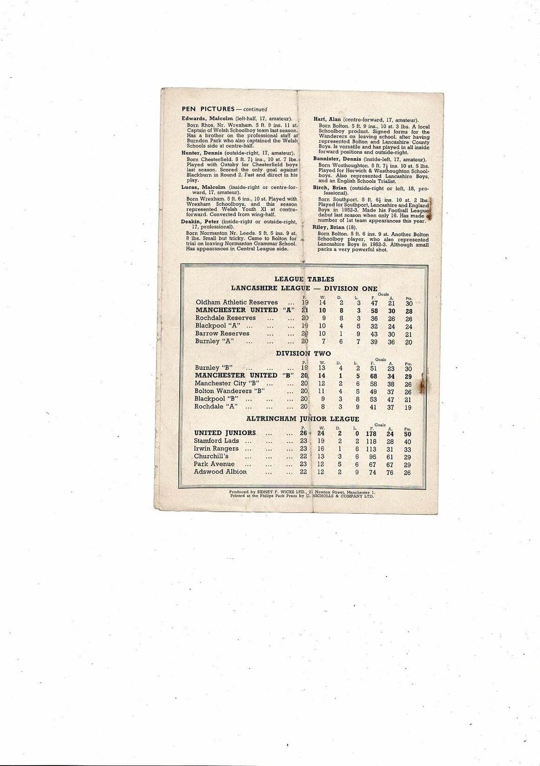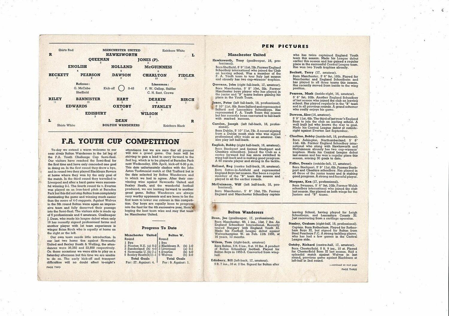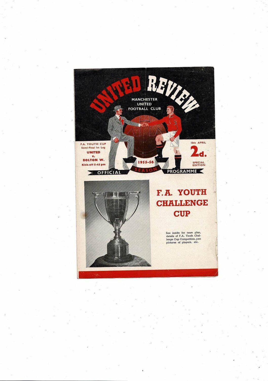 1955/56 Manchester United v Bolton Wanderers FA Youth Cup Semi Final Football Programme