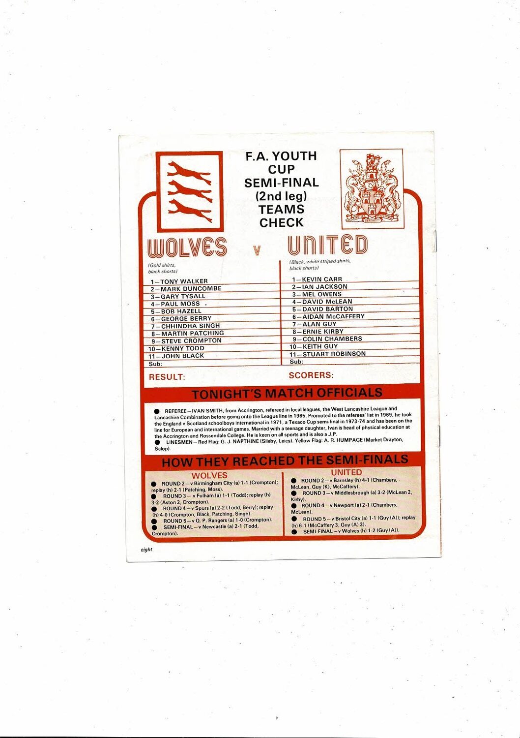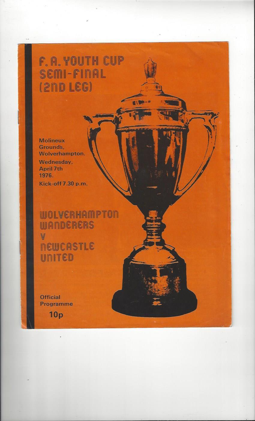 1975/76 Wolves v Newcastle United FA Youth Cup Semi Final Football Programme