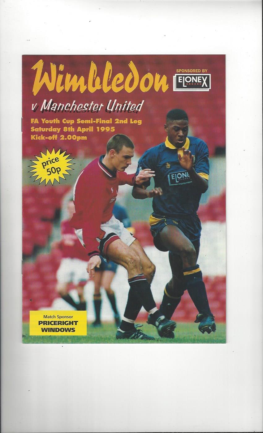 1994/95 Wimbledon v Manchester United Youth FA Cup Semi Final Football Programme