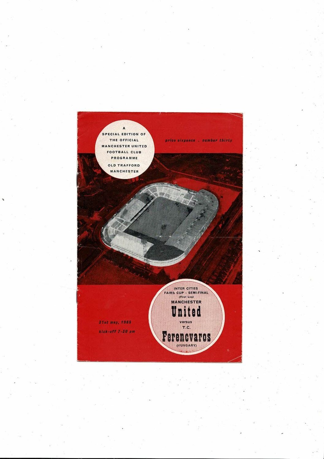 1965 Manchester United v Ferencvaros UEFA Fairs Cup Semi Final Football Programme