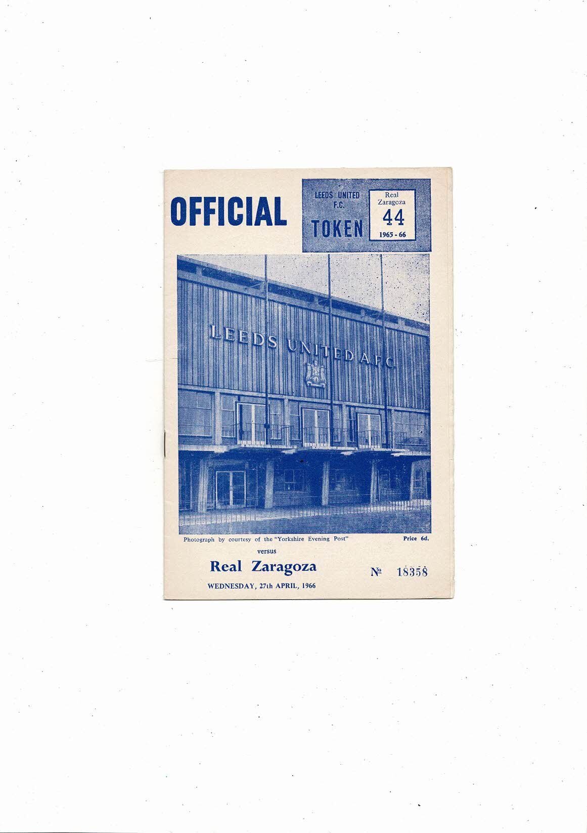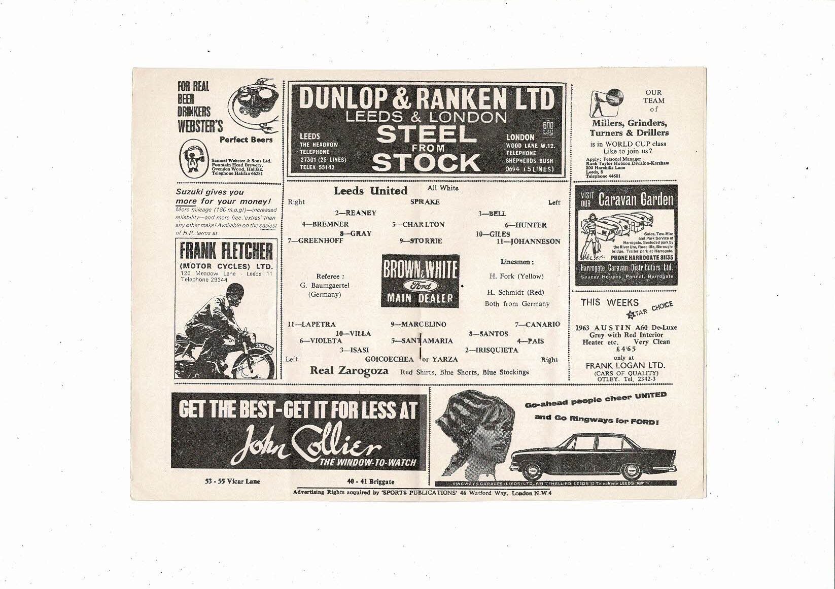 1966 Leeds United v Real Zaragoza UEFA Fairs Cup Semi Final Football Programme April