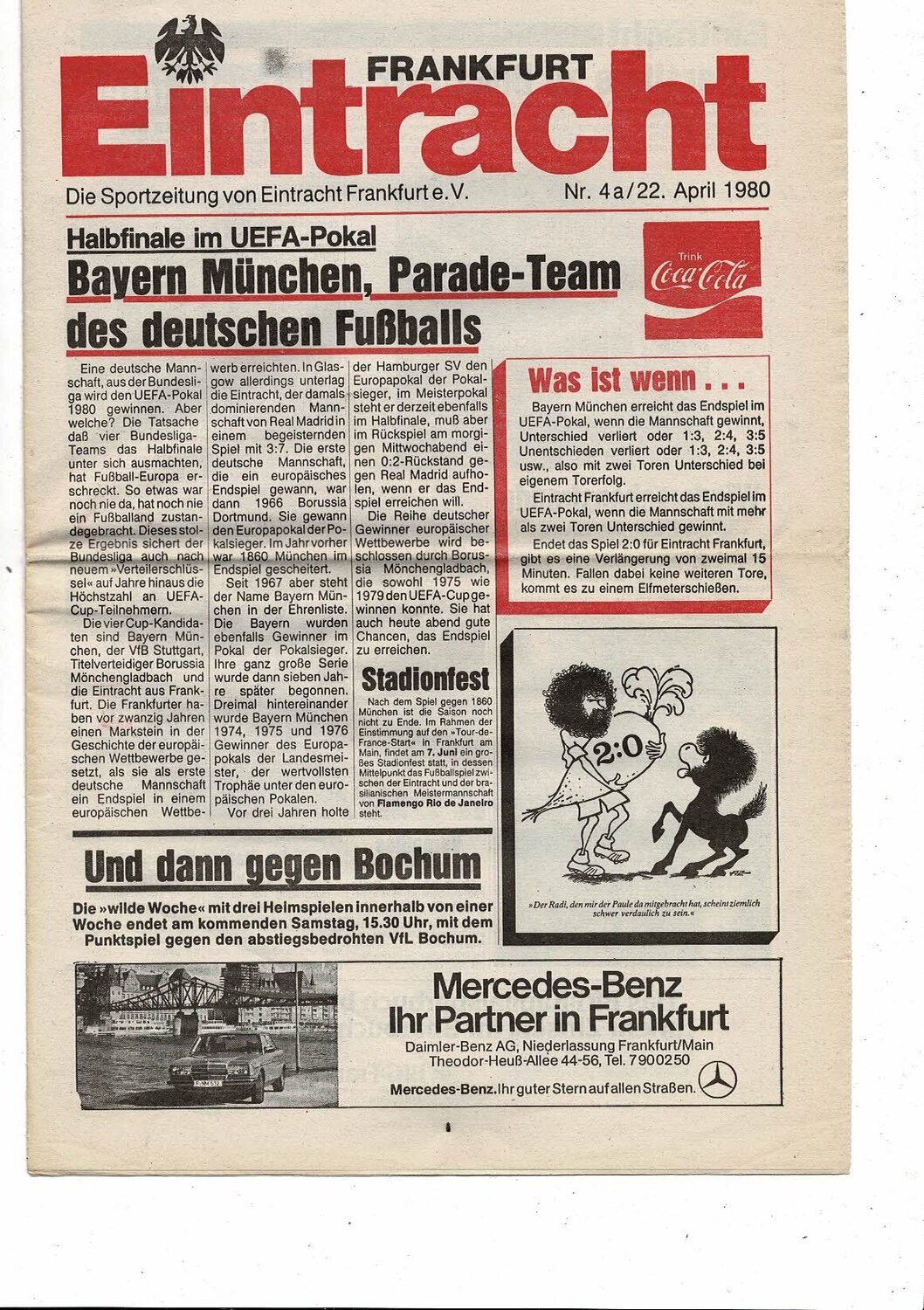 1980 Eintracht Frankfurt v Bayern Munich UEFA Fairs Cup Semi Final Football Programme