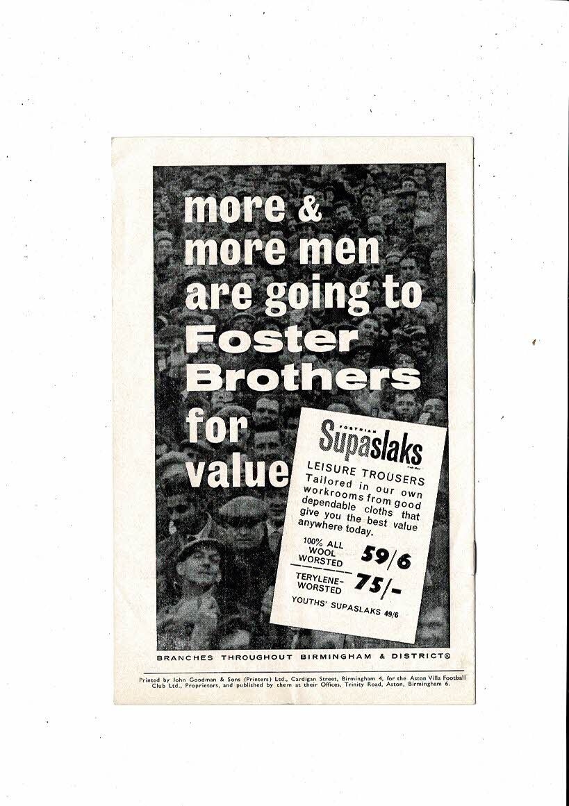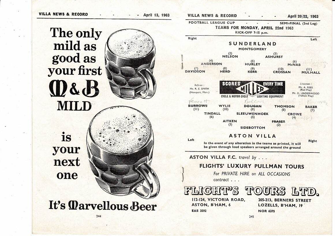 1962/63 Aston Villa v Sunderland League Cup Semi Final Football Programme
