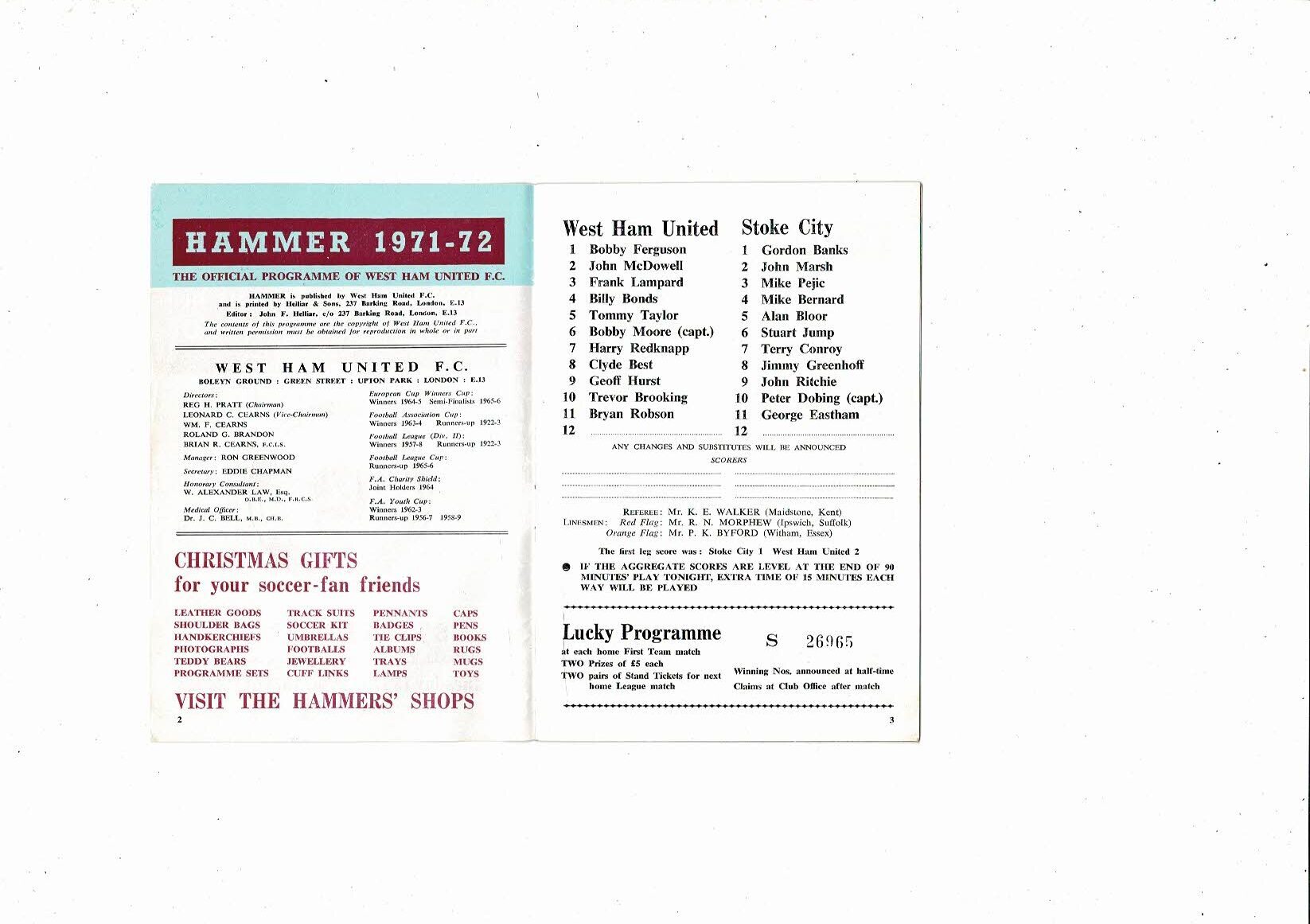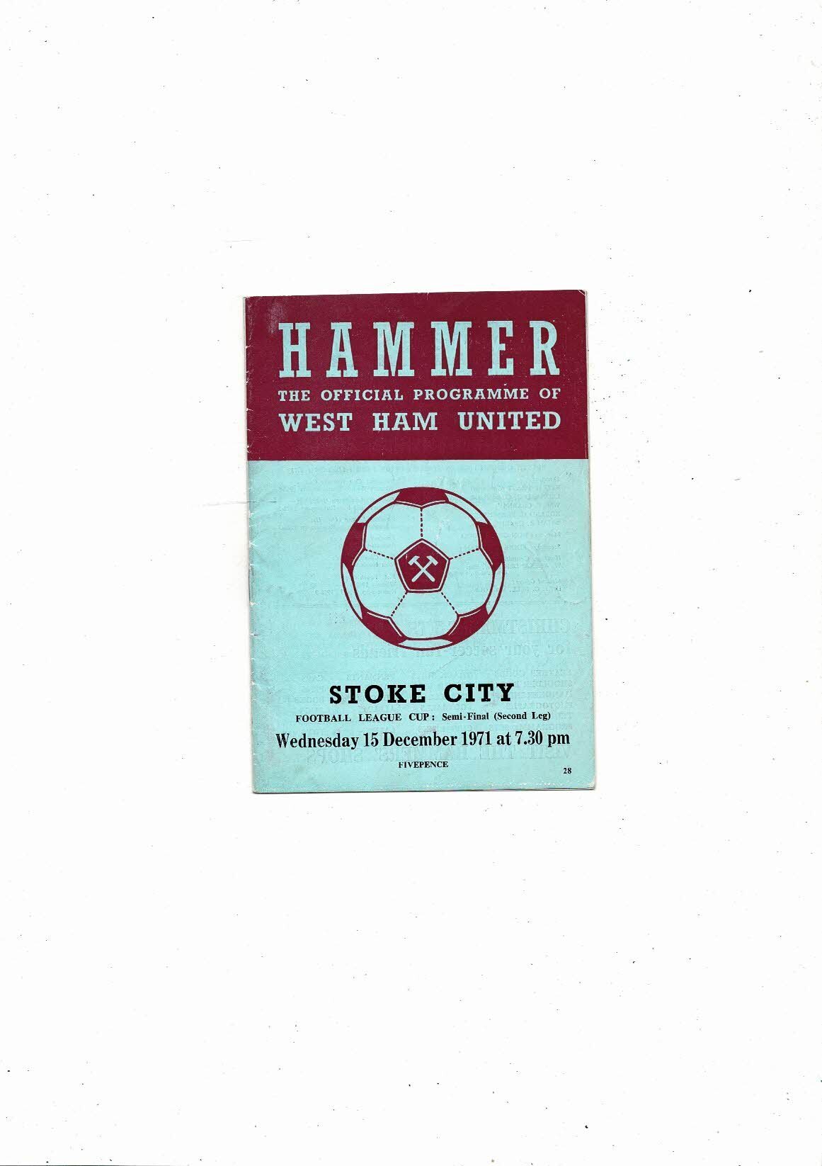 1971/72 West Ham United v Stoke City League Cup Semi Final Football Programme