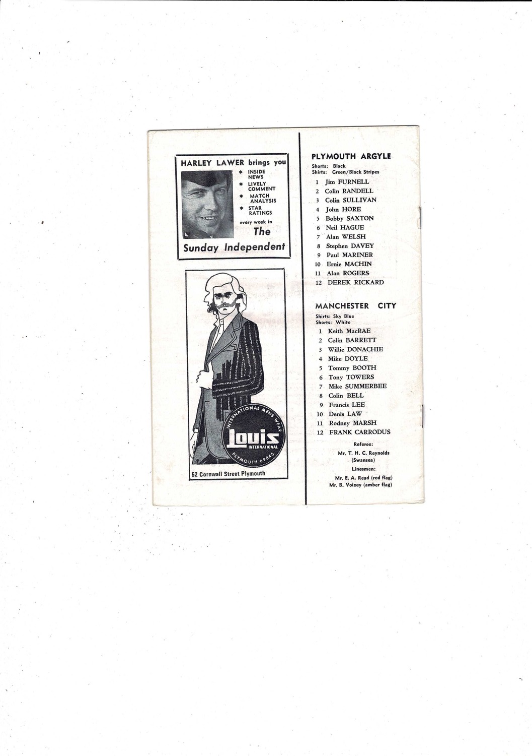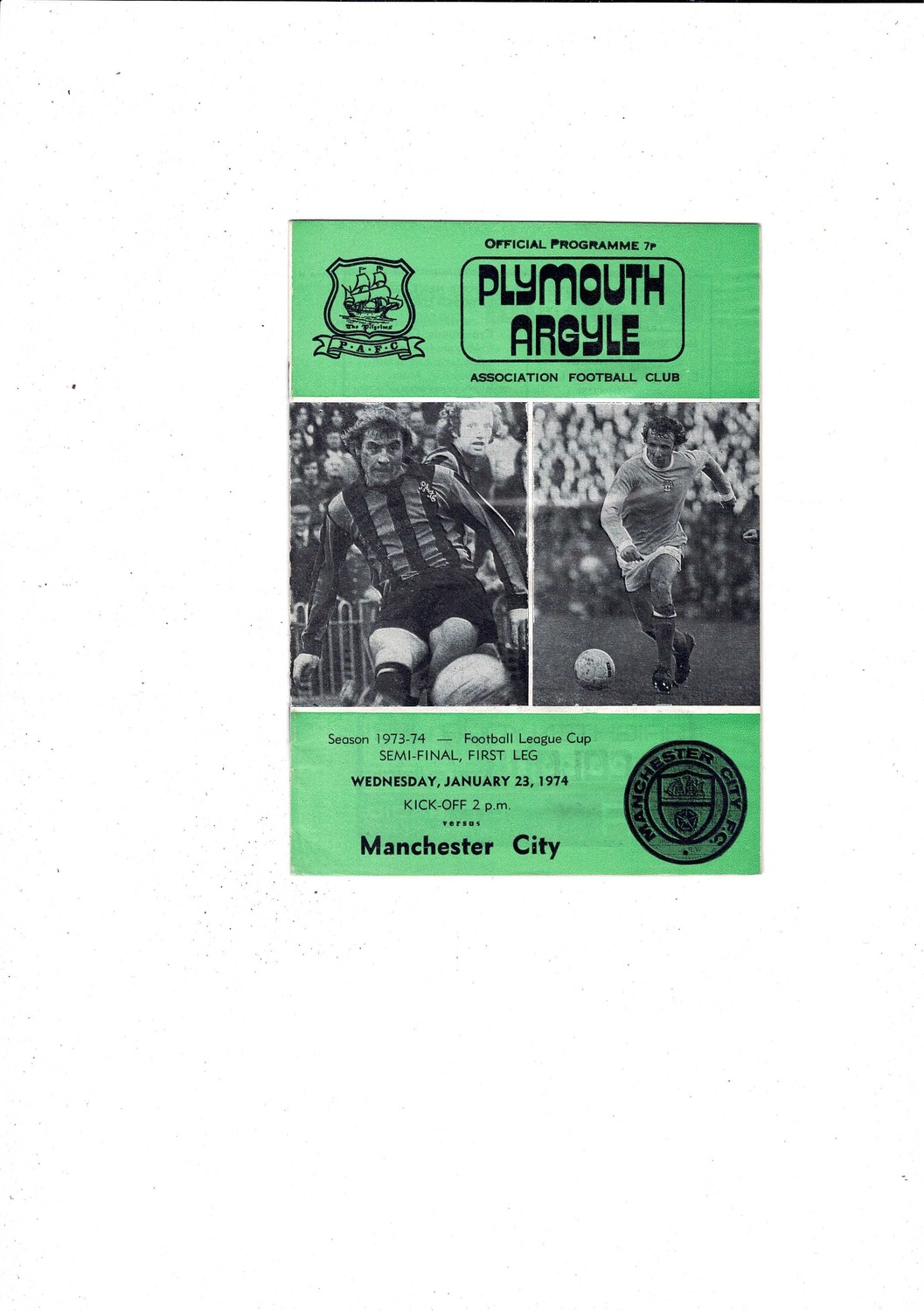 1973/74 Plymouth v Manchester City League Cup Semi Final White back Programme