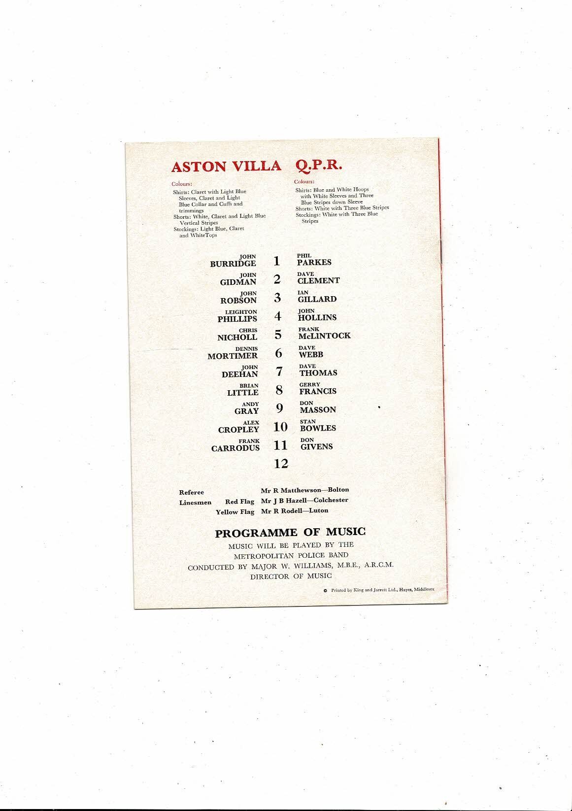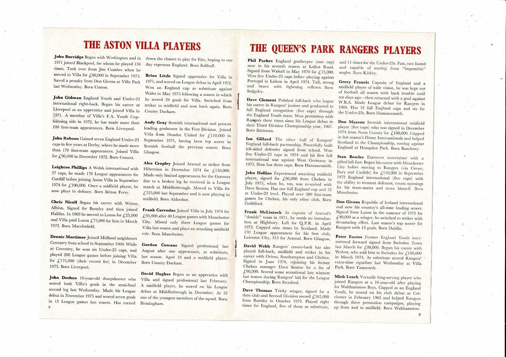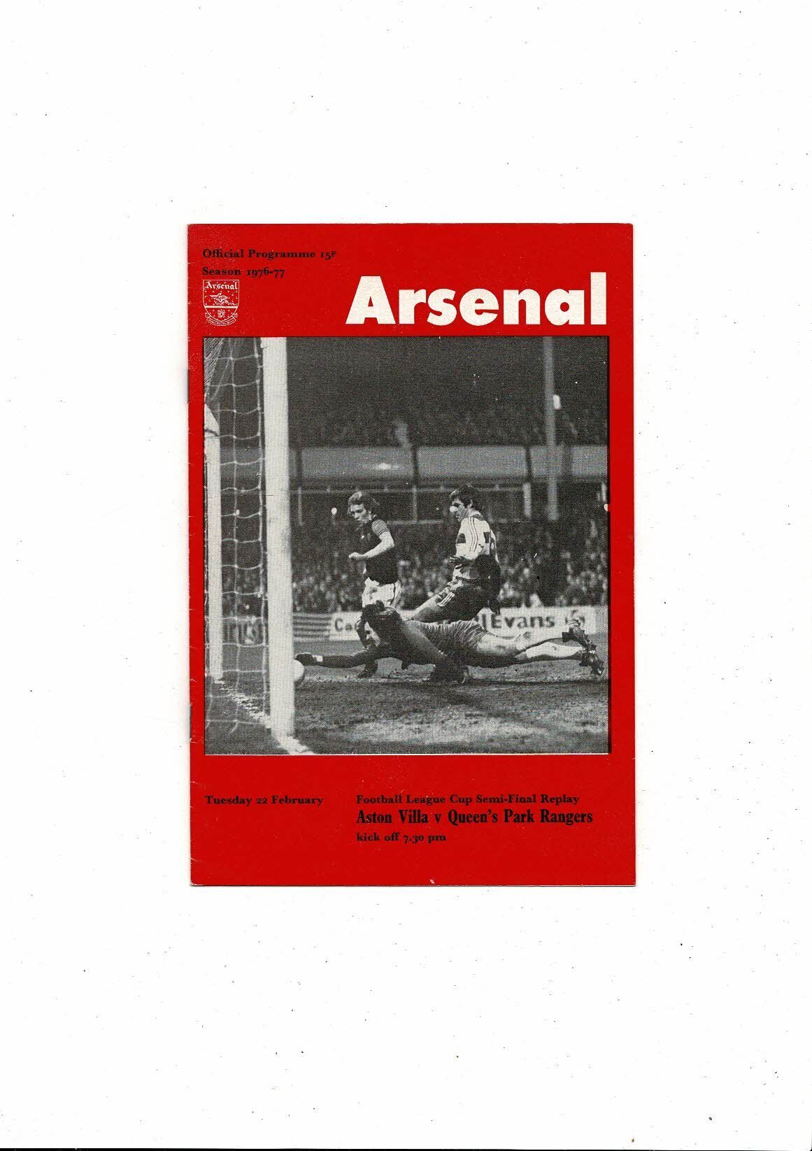 1976/77 Aston Villa v Queens Park Rangers League Cup Semi Final Replay Football Programme @ Arsenal