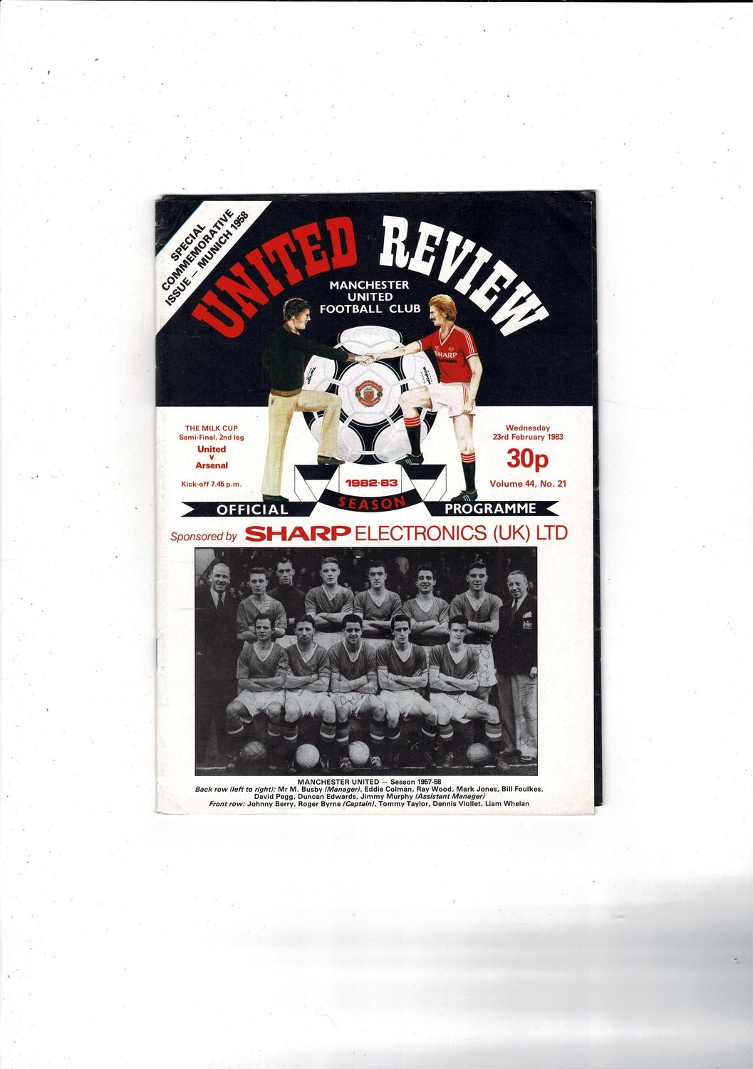 1982/83 Manchester United v Arsenal League Cup Semi Final Football Programme