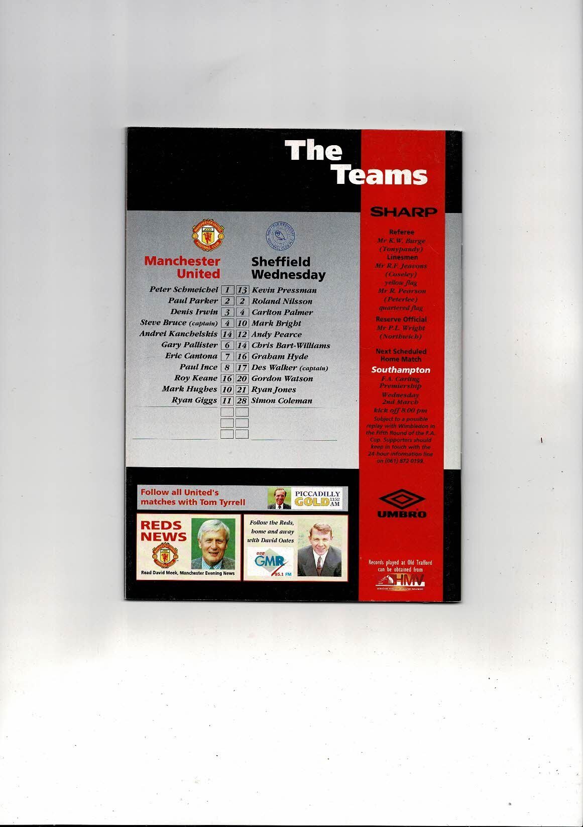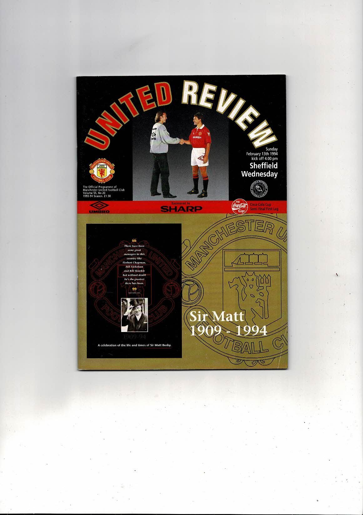 1993/94 Manchester United v Sheffield Wednesday League Cup Semi Final Football Programme