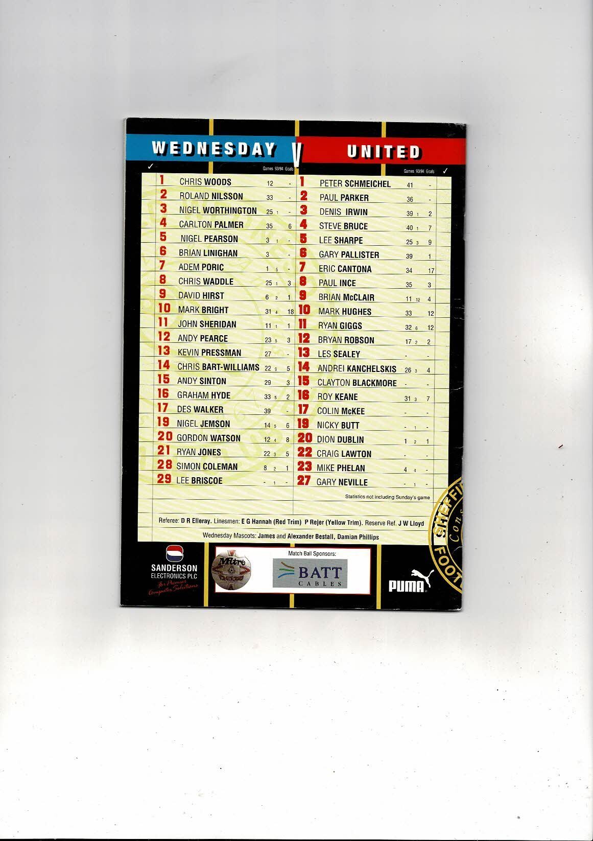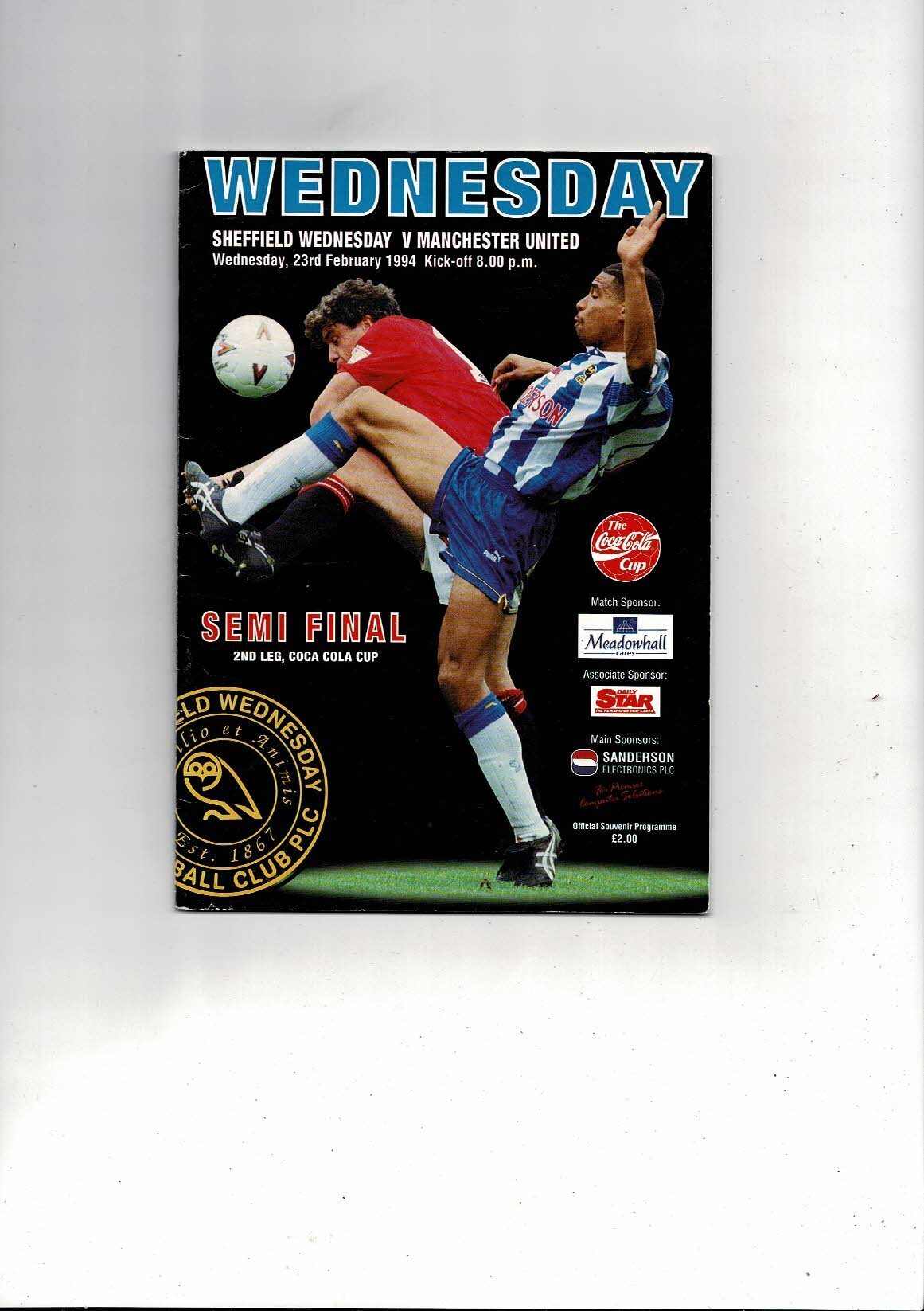 1993/94 Sheffield Wednesday v Manchester United League Cup Semi Final Football Programme