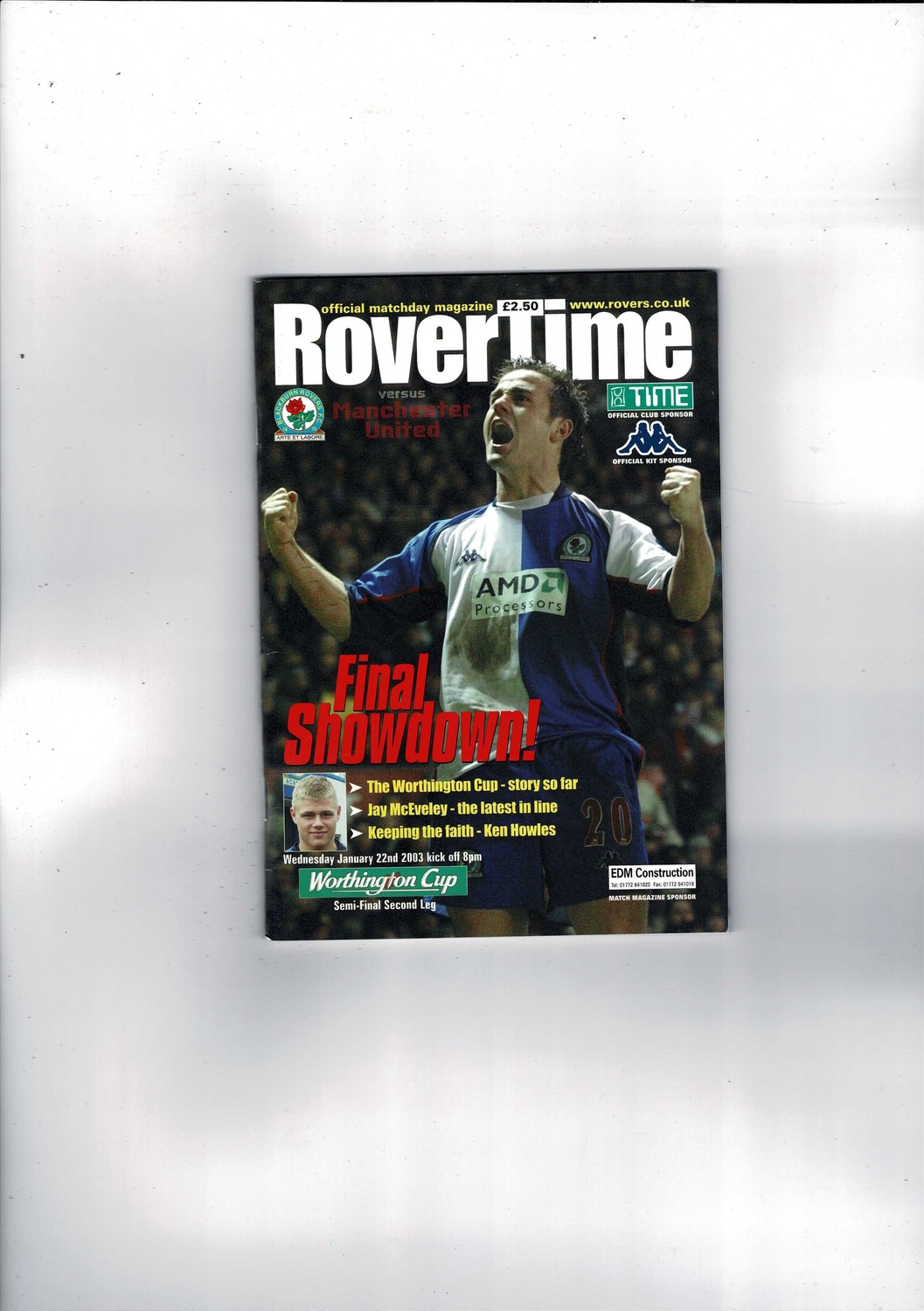 2002/03 Blackburn Rovers v Manchester United League Cup Semi Final Football Programme