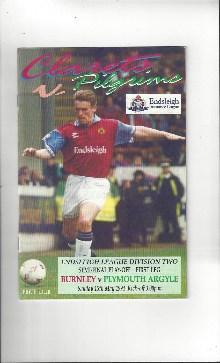 Burnley v Plymouth Argyle Play Off Football Programme 1993/94