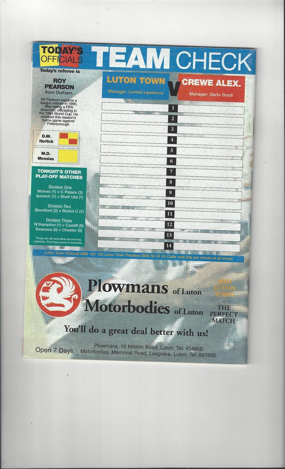 Luton Town v Crewe Alexandra Play Off Football Programme 1996/97
