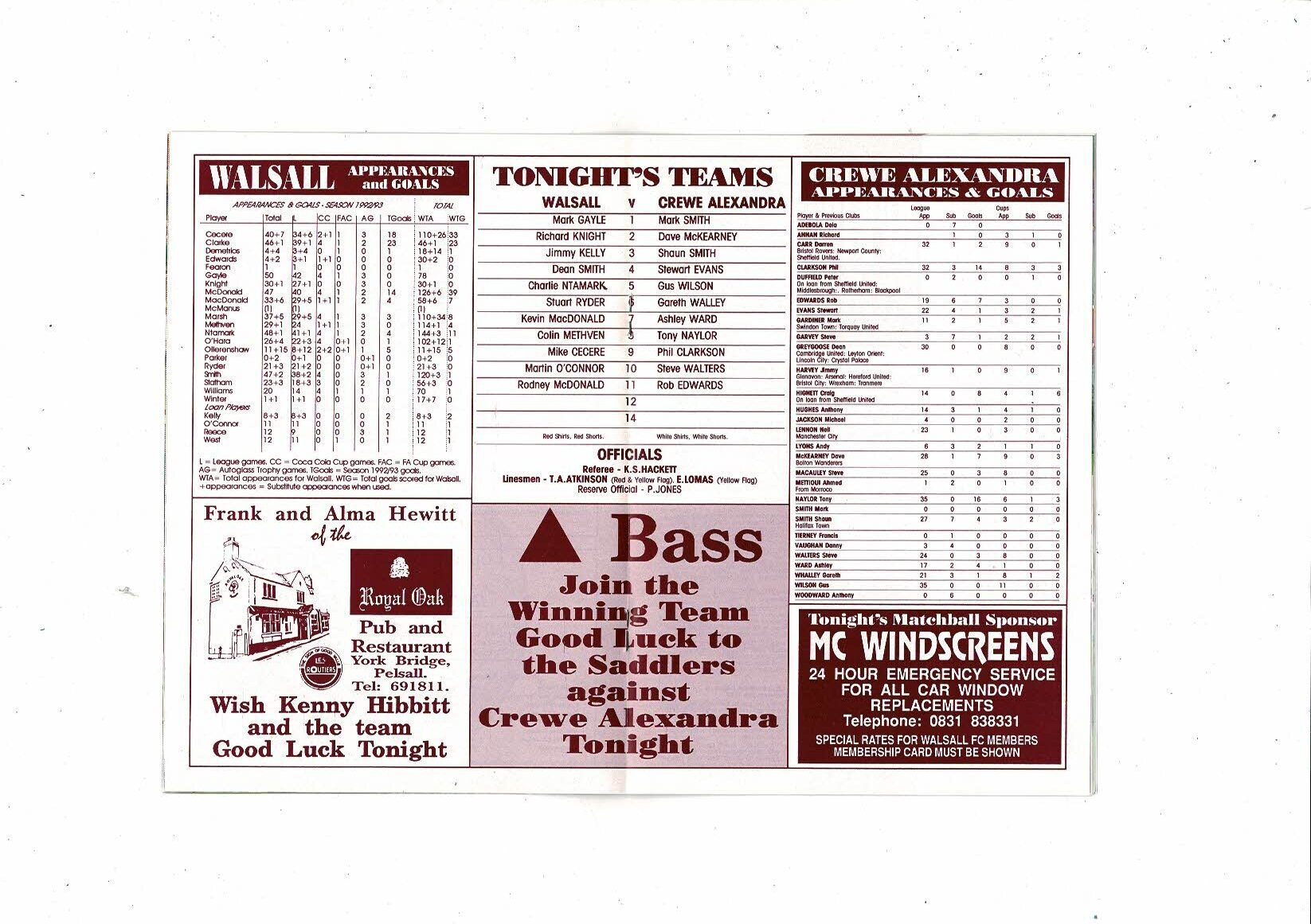 Walsall v Crewe Alexandra Play Off Football Programme 1992/93