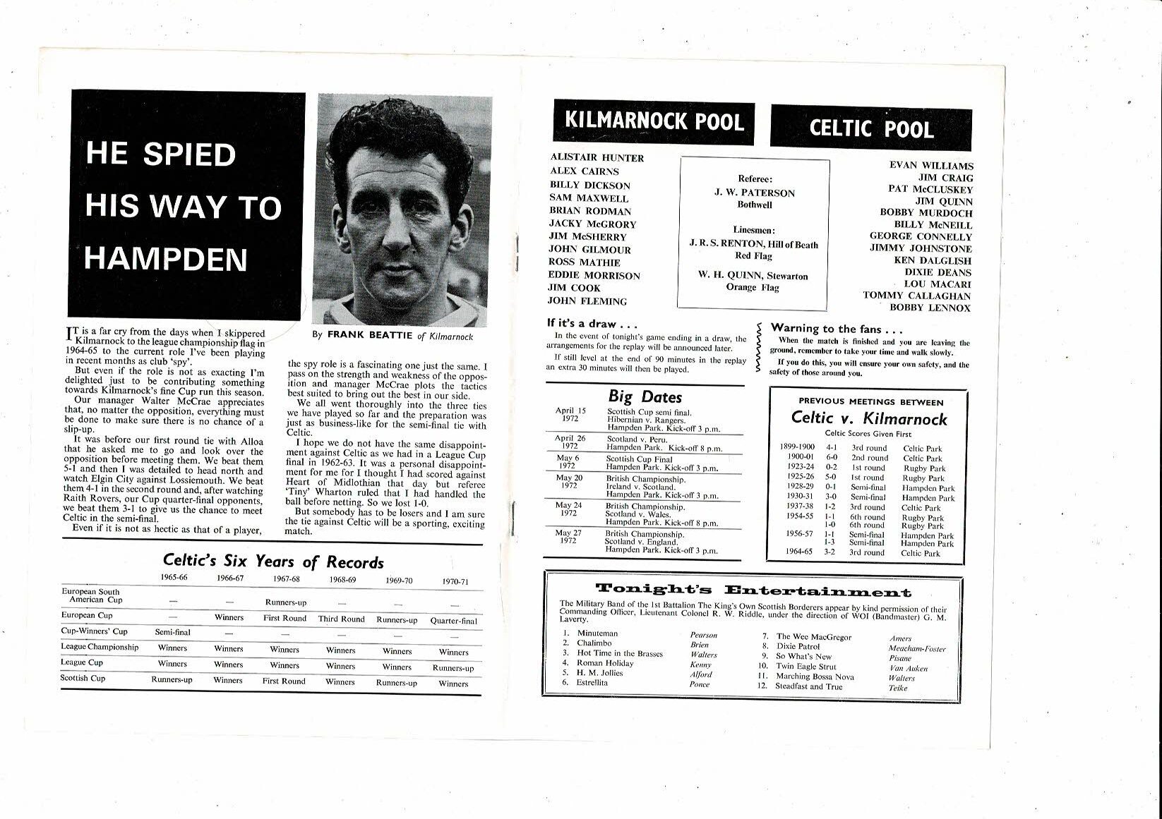 1972 Kilmarnock v Celtic Scottish Cup Semi Final Football Programme