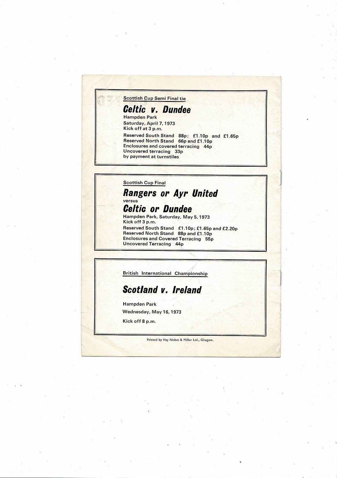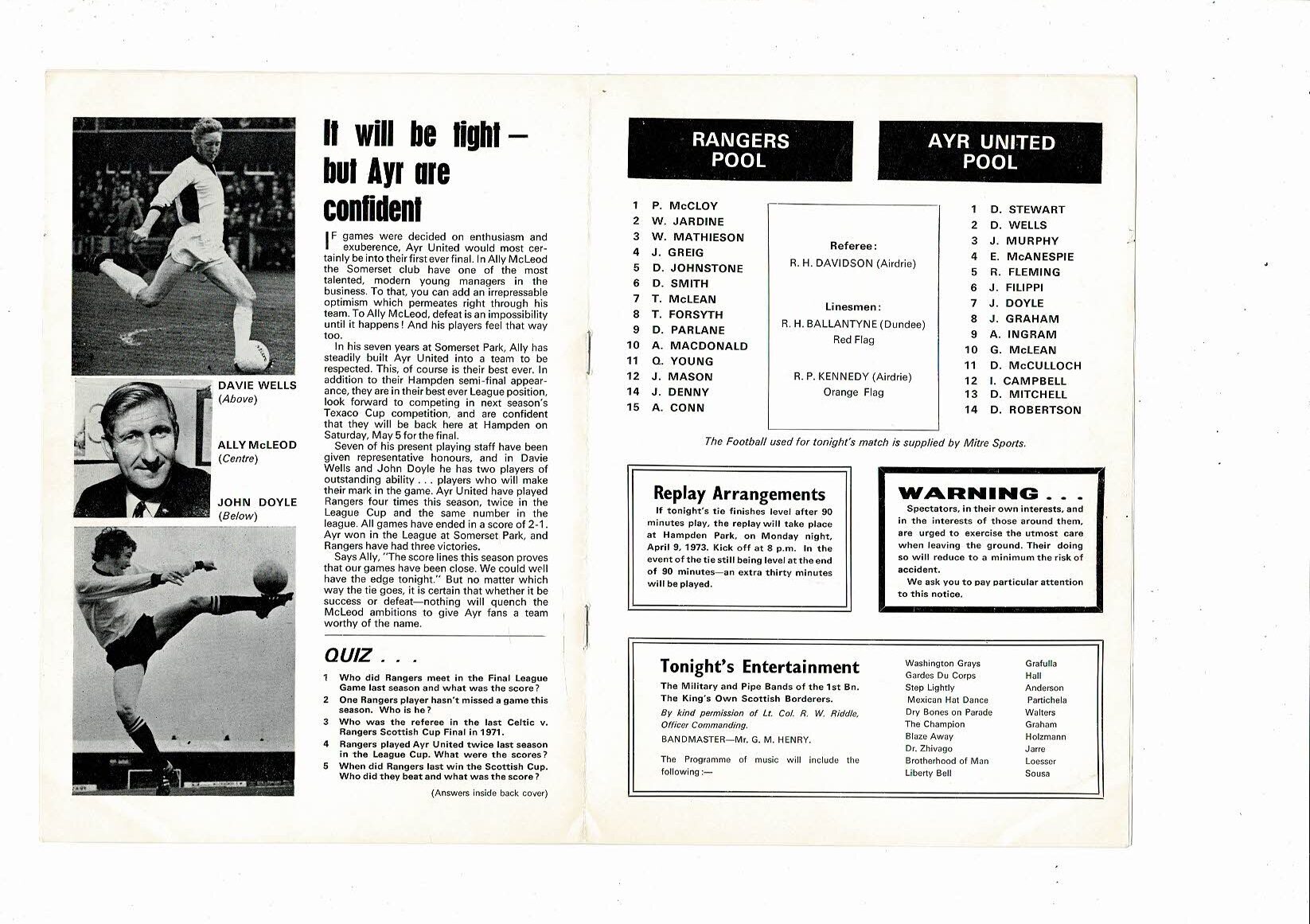 1973 Rangers v Ayr United Sottish Cup Semi Final Football Programme