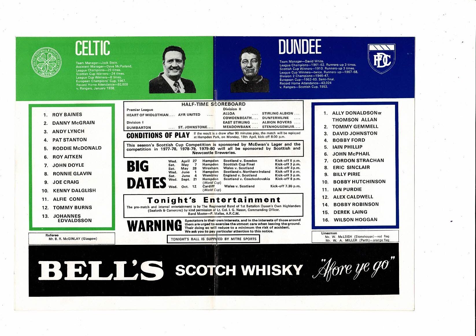 1977 Celtic v Dundee Scottish Cup Semi Final Football Programme
