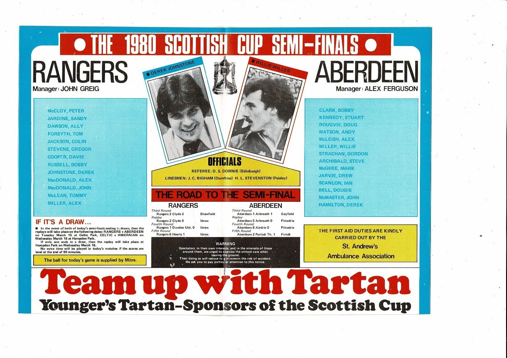 1980 Rangers v Aberdeen Scottish Cup Semi Final Football Programme