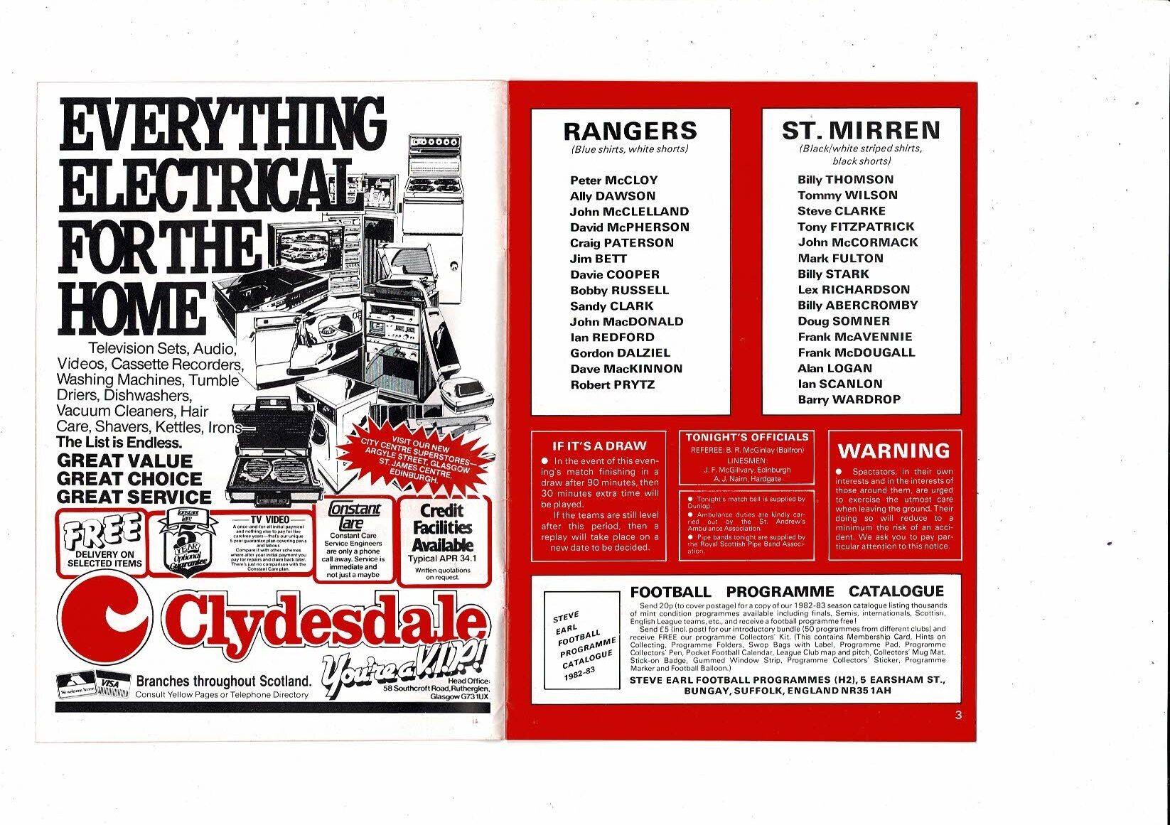 1983 Rangers v St. Mirren Scottish Cup Semi Final Replay Football Programme