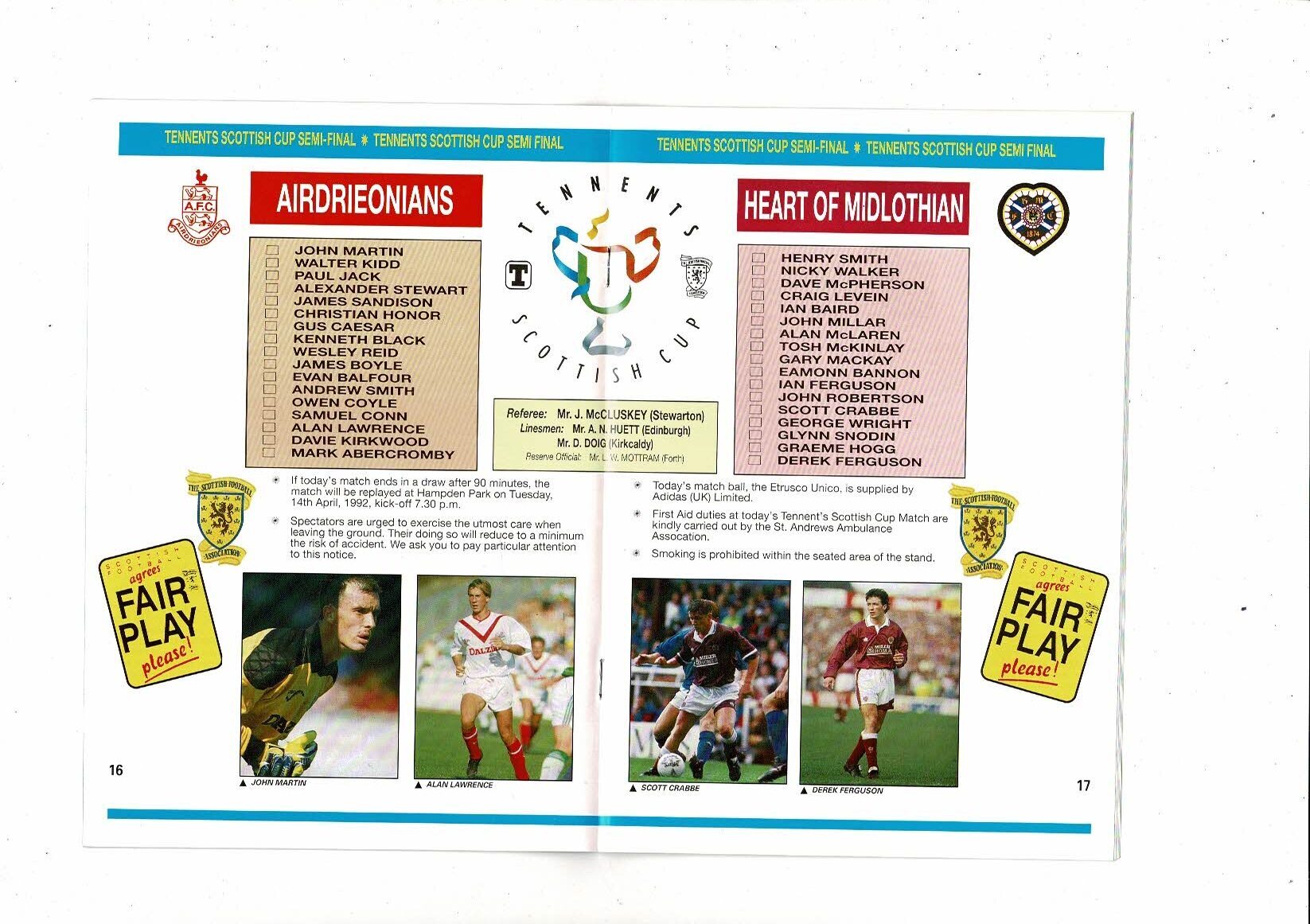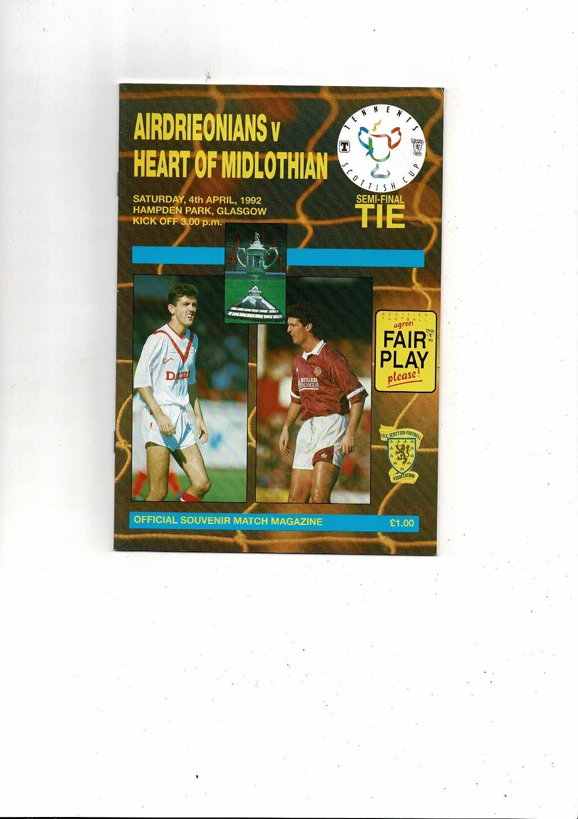 1992 Airdrie v Hearts Scottish Cup Semi Final Football Programme