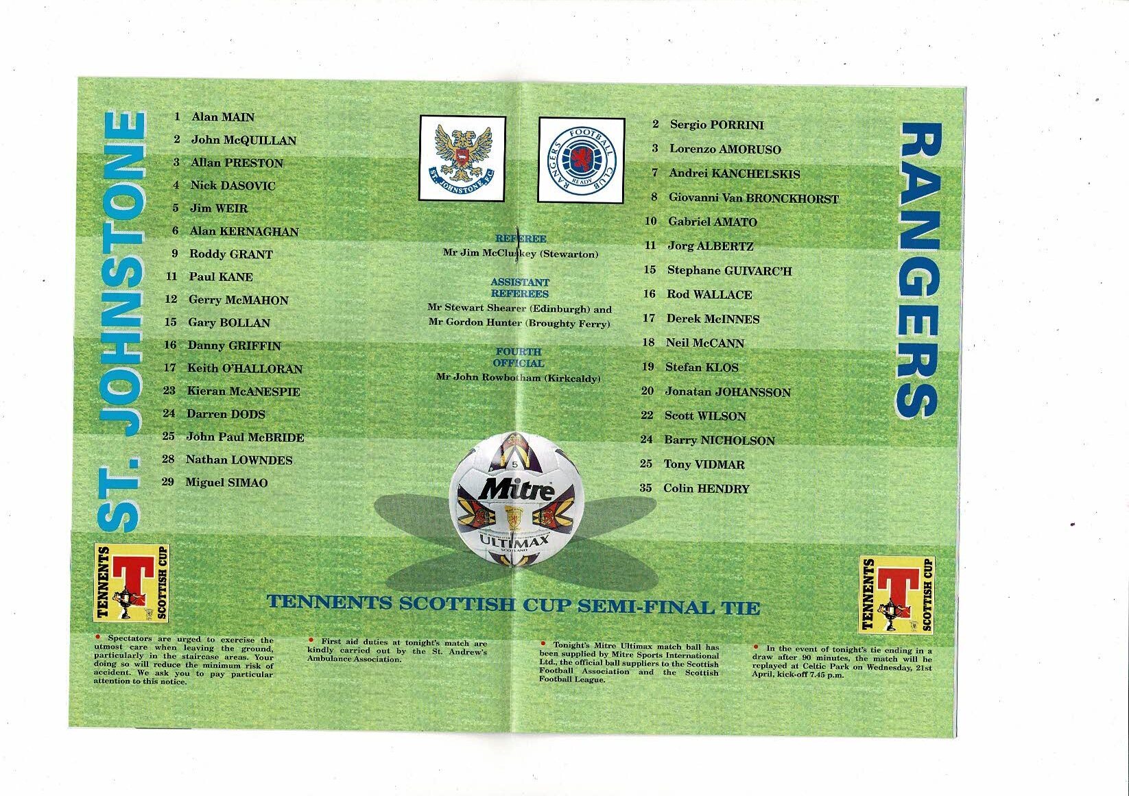 1999 St Johnstone v Rangers Scottish Cup Semi Final Football Programme