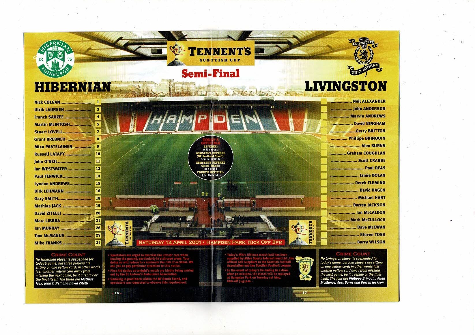 2001 Hibernian v Livingston Scottish Cup Semi Final Football Programme