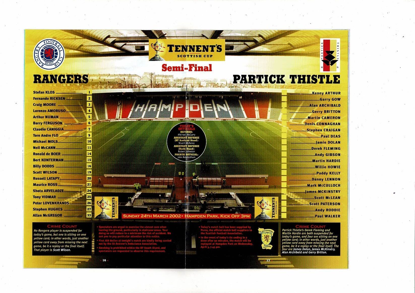 2002 Rangers v Partick Thistle Scottish Cup Semi Final Football Programme
