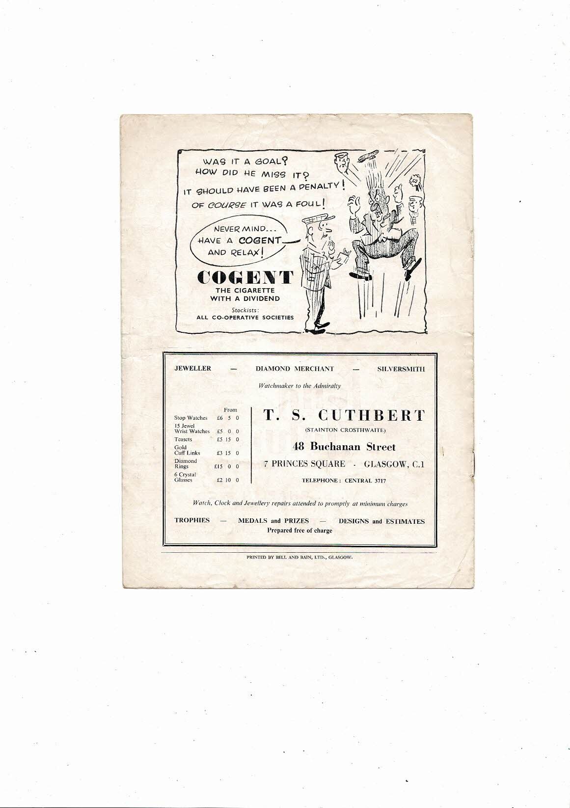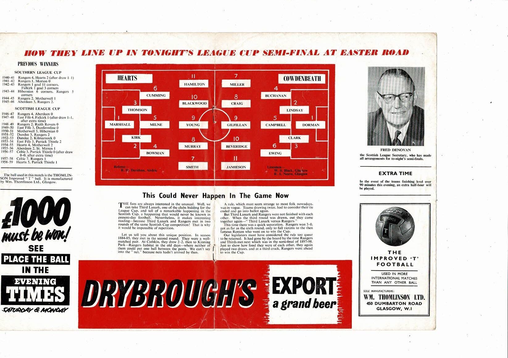 1959/60 Hearts v Cowdenbeath Scottish League Cup Semi Final Football Programme