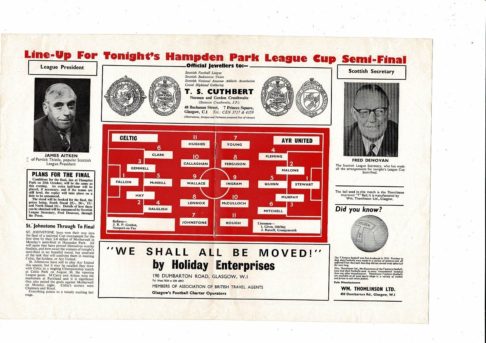 1969/70 Celtic v Ayr United Scottish League Cup Semi Final Football Programme