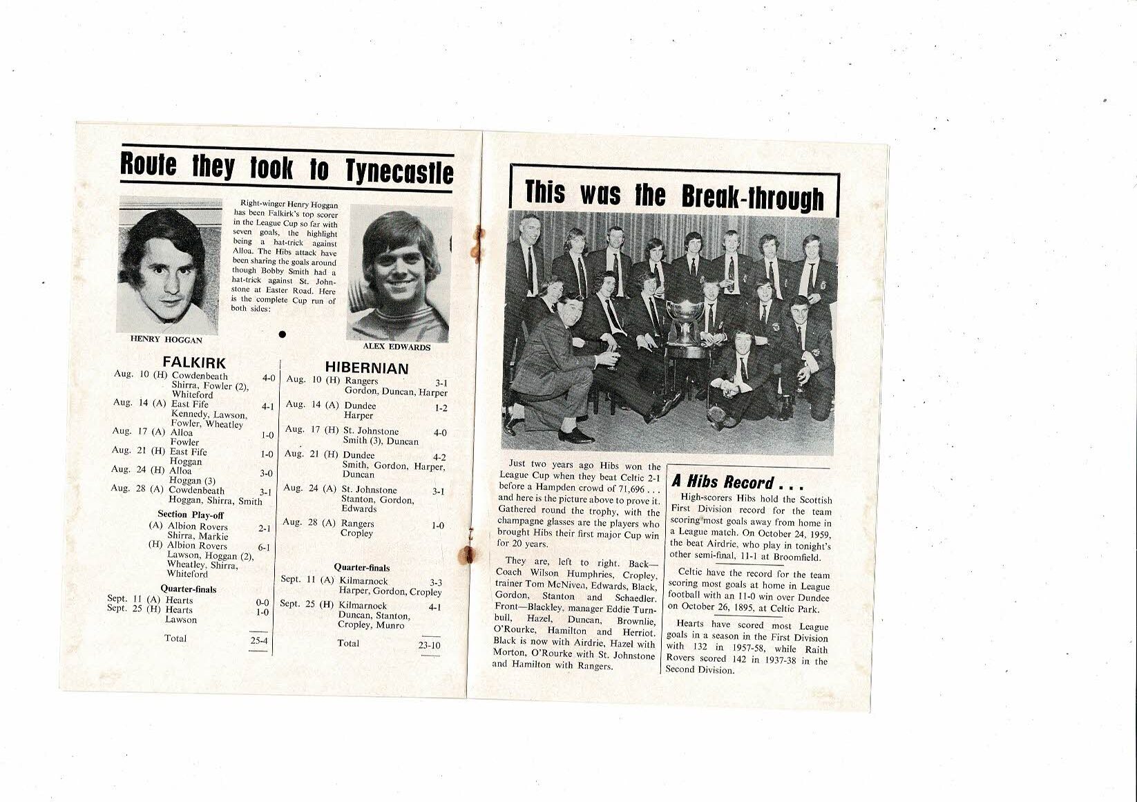 1974/75 Falkirk v Hibernian Scottish League Cup Semi Final Football Programme