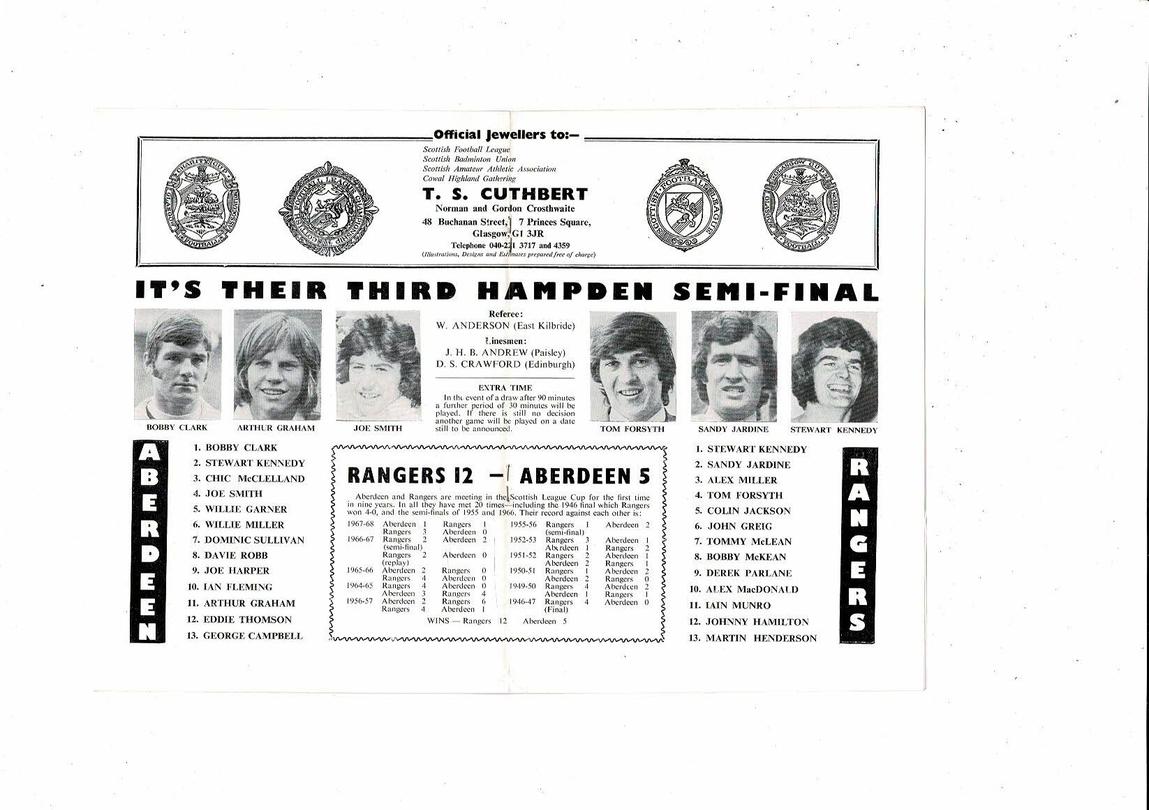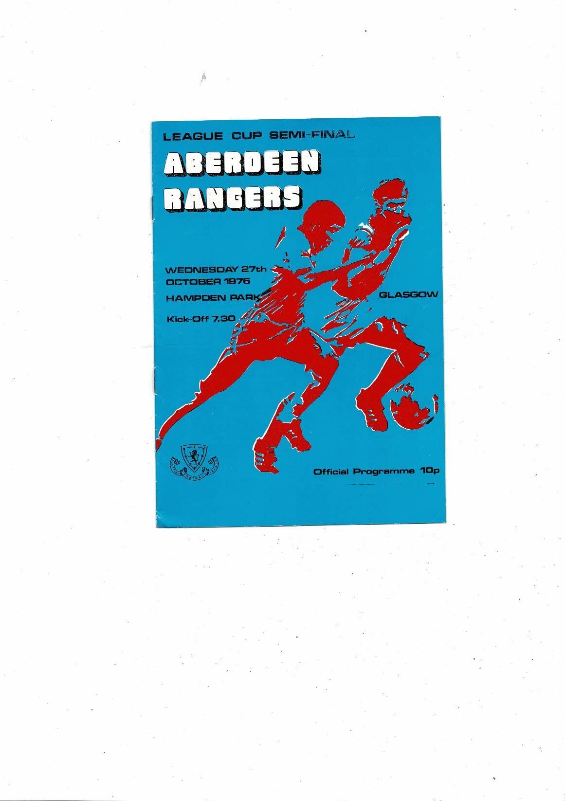 1976/77 Aberdeen v Rangers Scottish League Cup Semi Final Football Programme