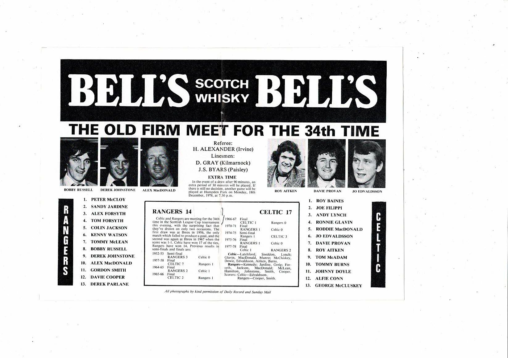 1978/79 Rangers v Celtic Scottish League Cup Semi Final Football Programme