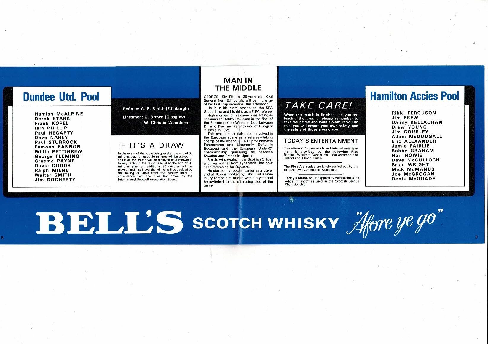 1979/80 Dundee United v Hamilton Accies Scottish League Cup Semi Final Football Programme