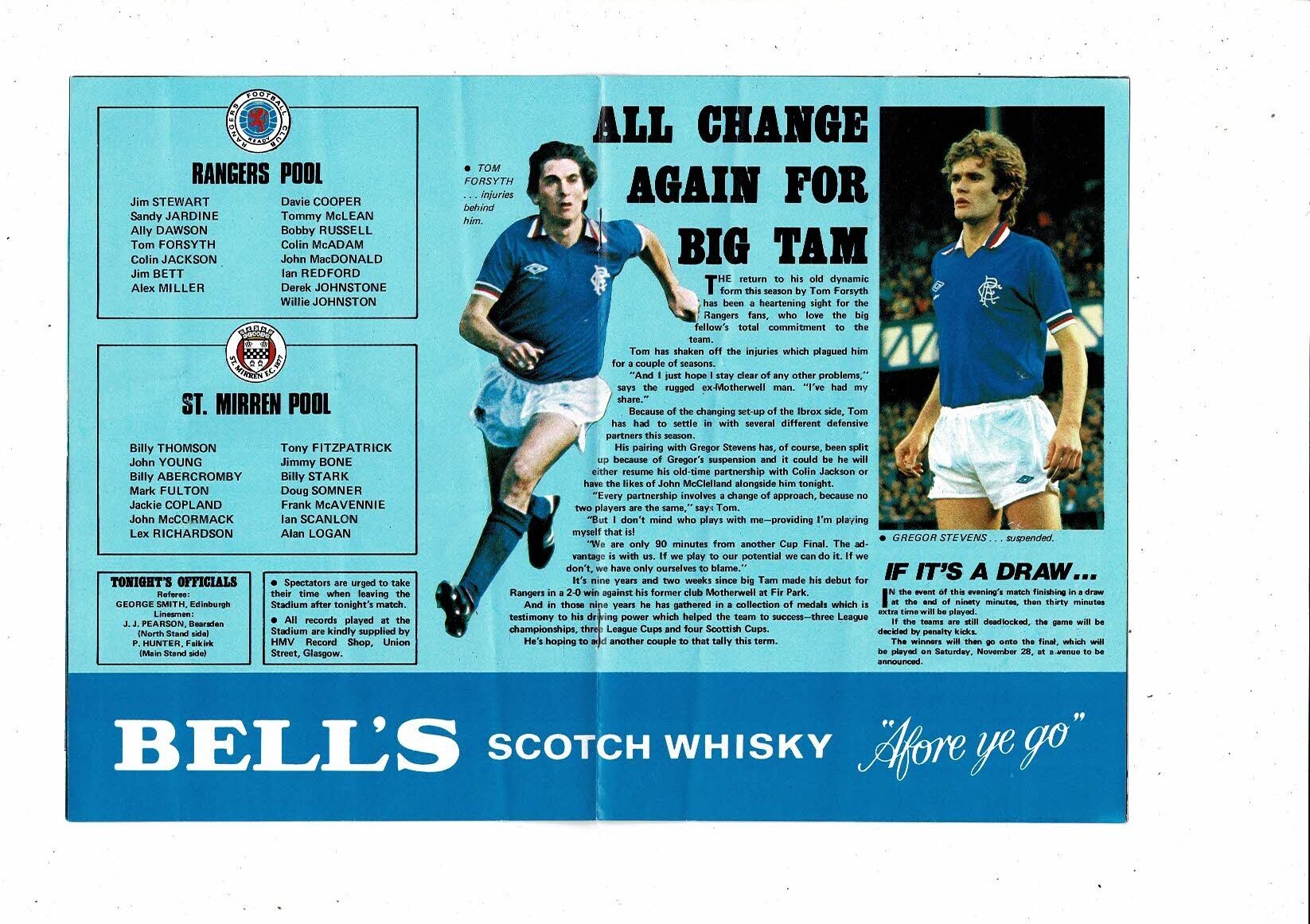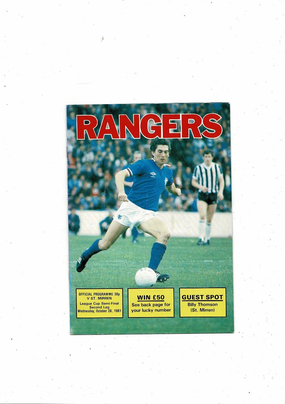 1981/82 Rangers v St Mirren Scottish League Cup Semi Final Football Programme