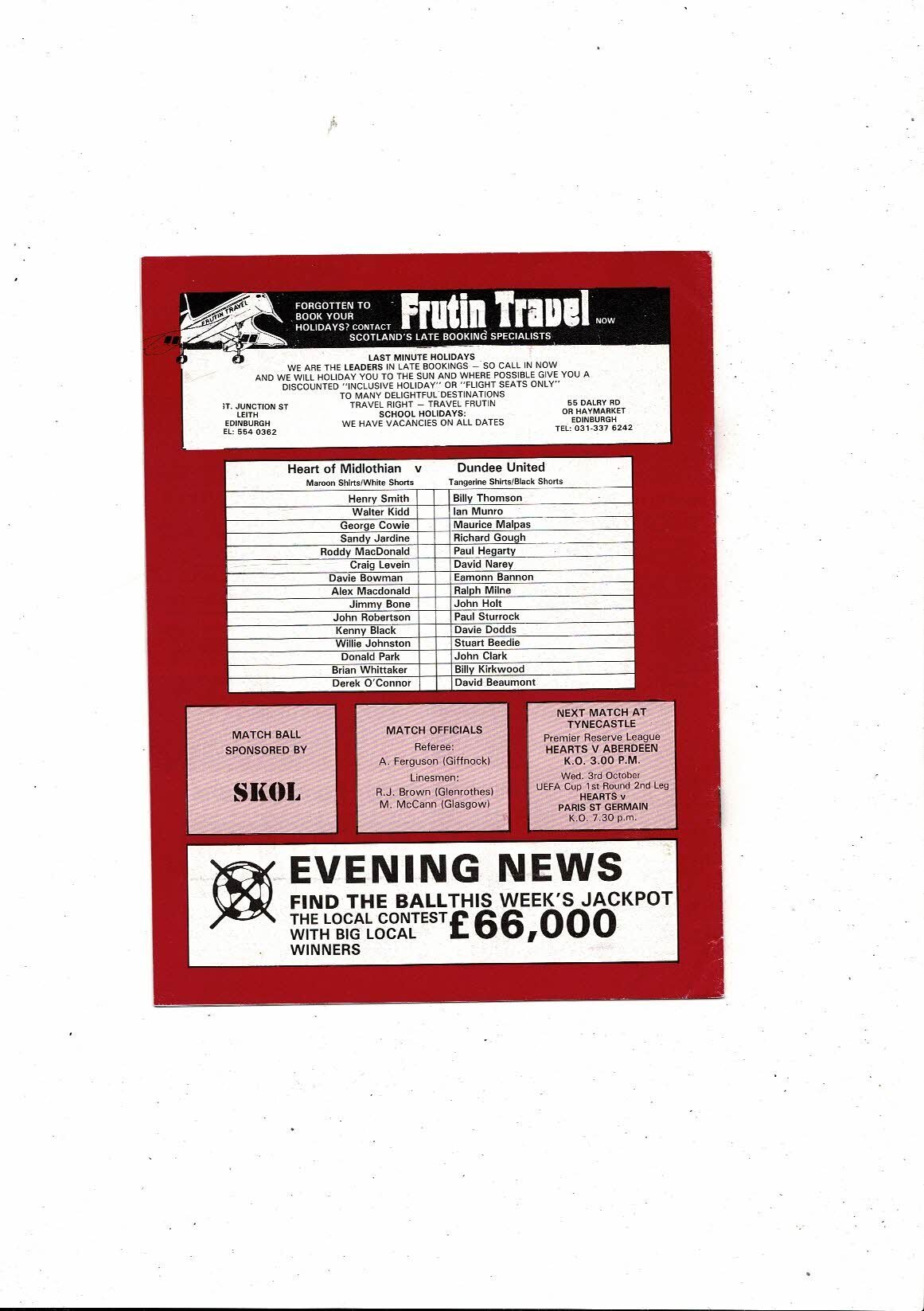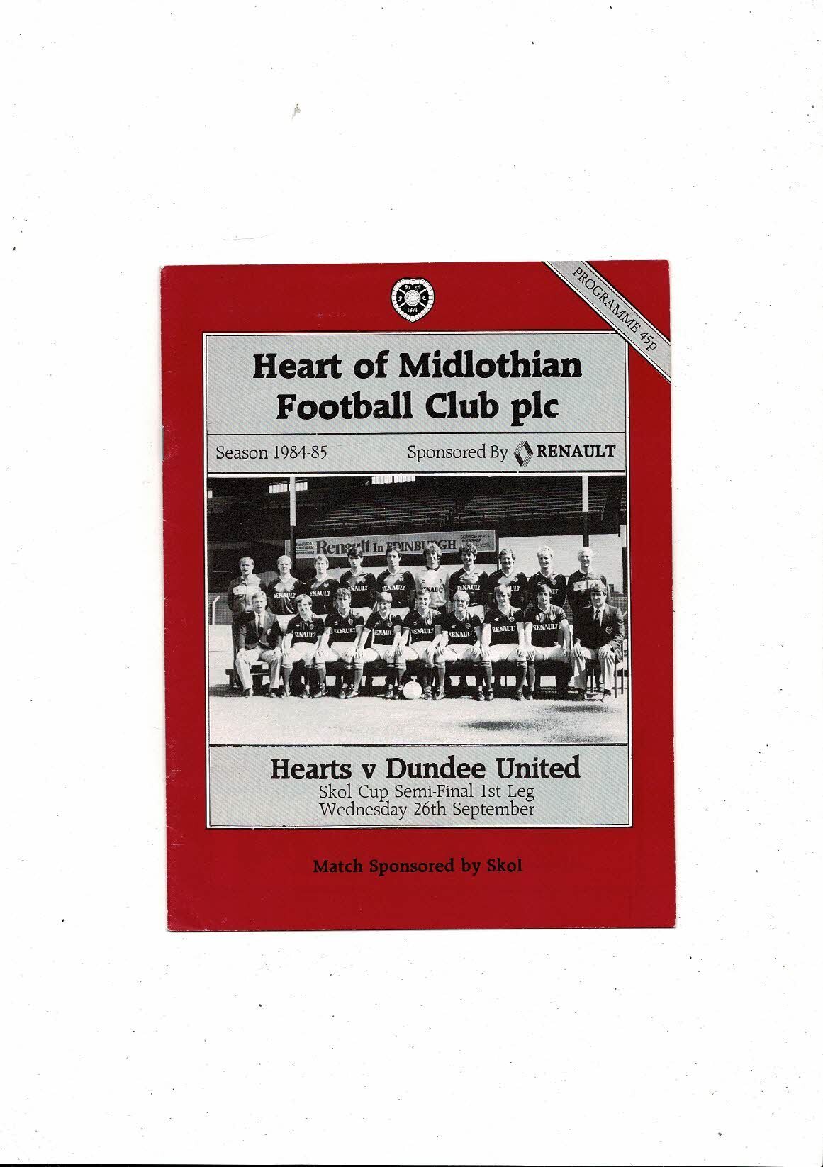 1984/85 Hearts v Dundee United Scottish League Cup Semi Final Programme