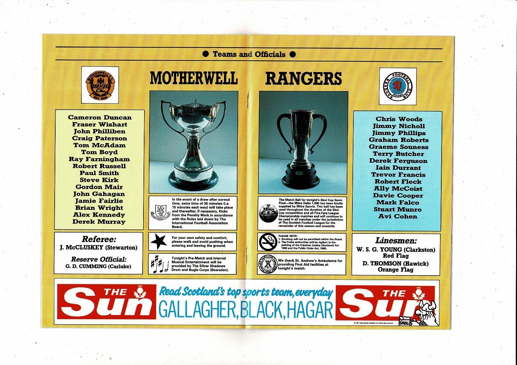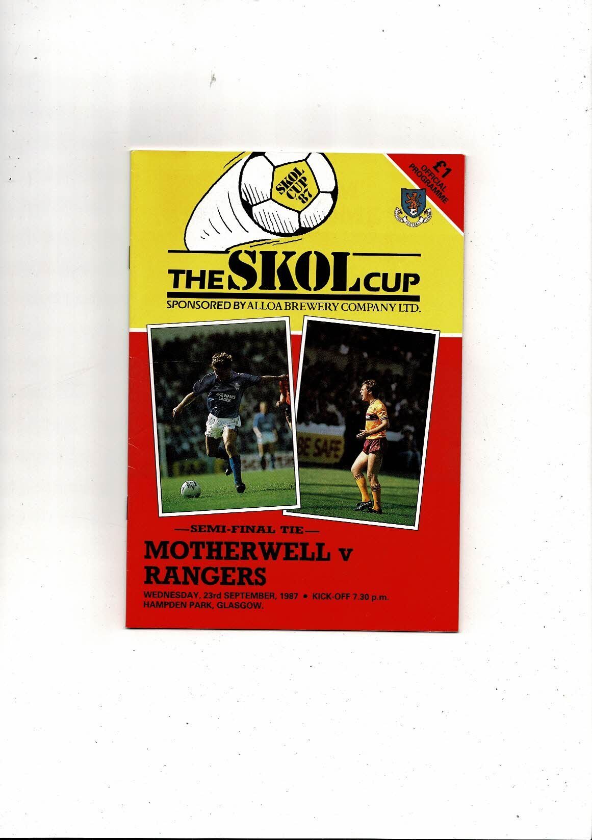 1987/88 Motherwell v Rangers Scottish League Cup Semi Final Football Programme