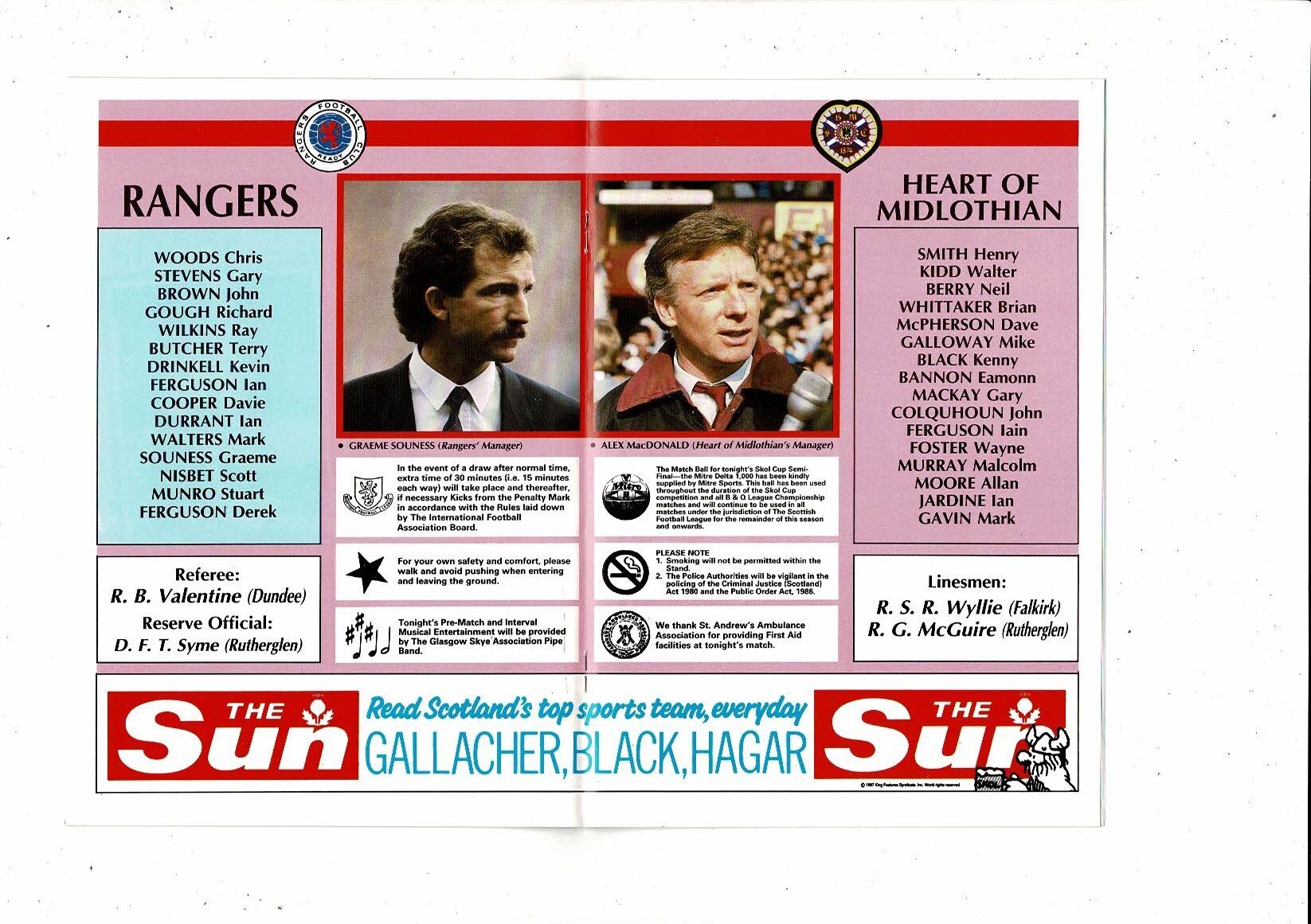 1988/89 Rangers v Hearts Scottish League Cup Semi Final Football Programme