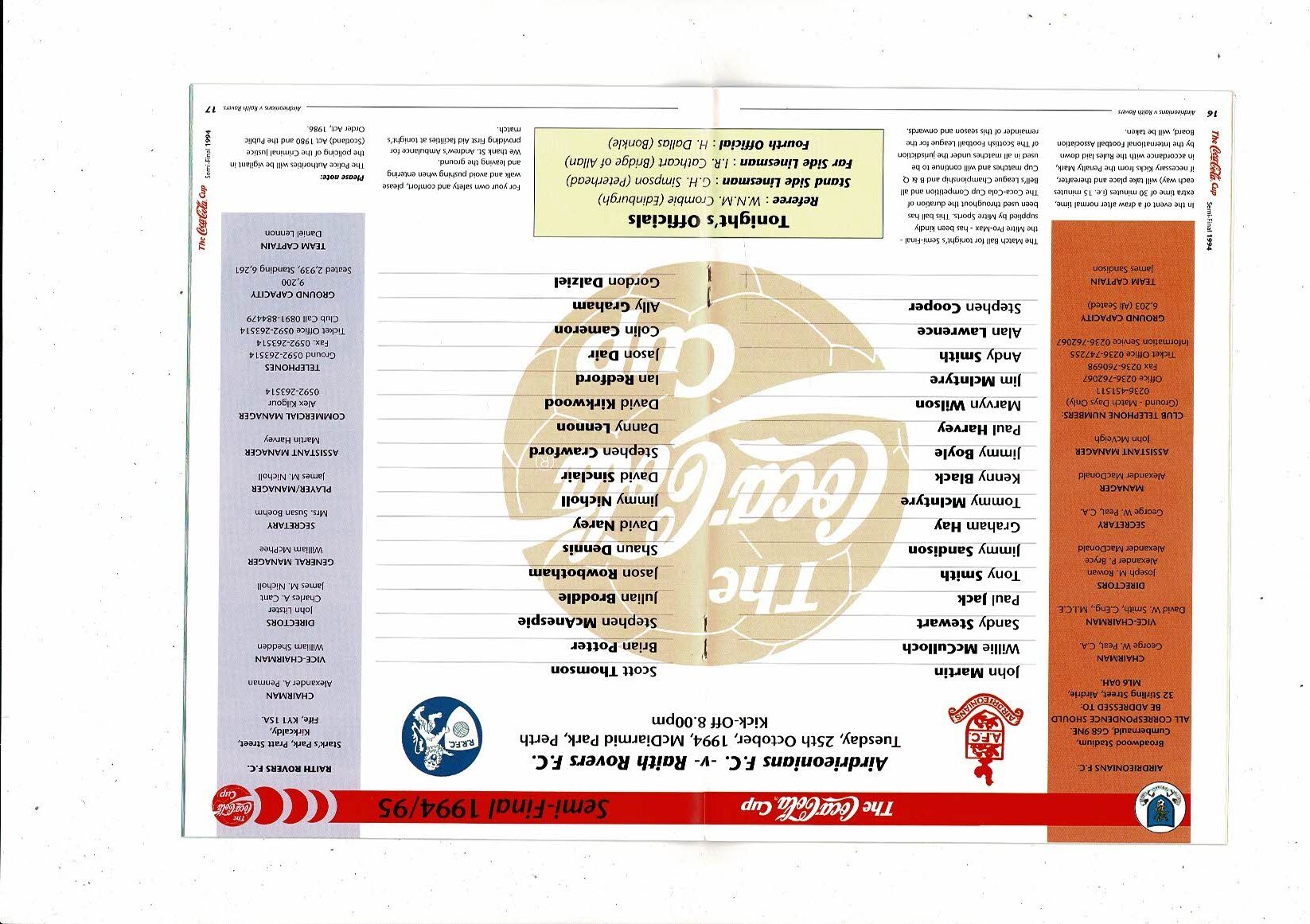 1994/95 Airdrie v Rath Rovers Scottish League Cup Semi Final Football Programme